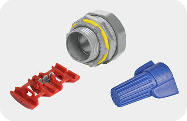 Accesorios eléctricos variados como conectores, mangas, pastillas, fusibles, garantizando seguridad y eficiencia en instalaciones eléctricas.