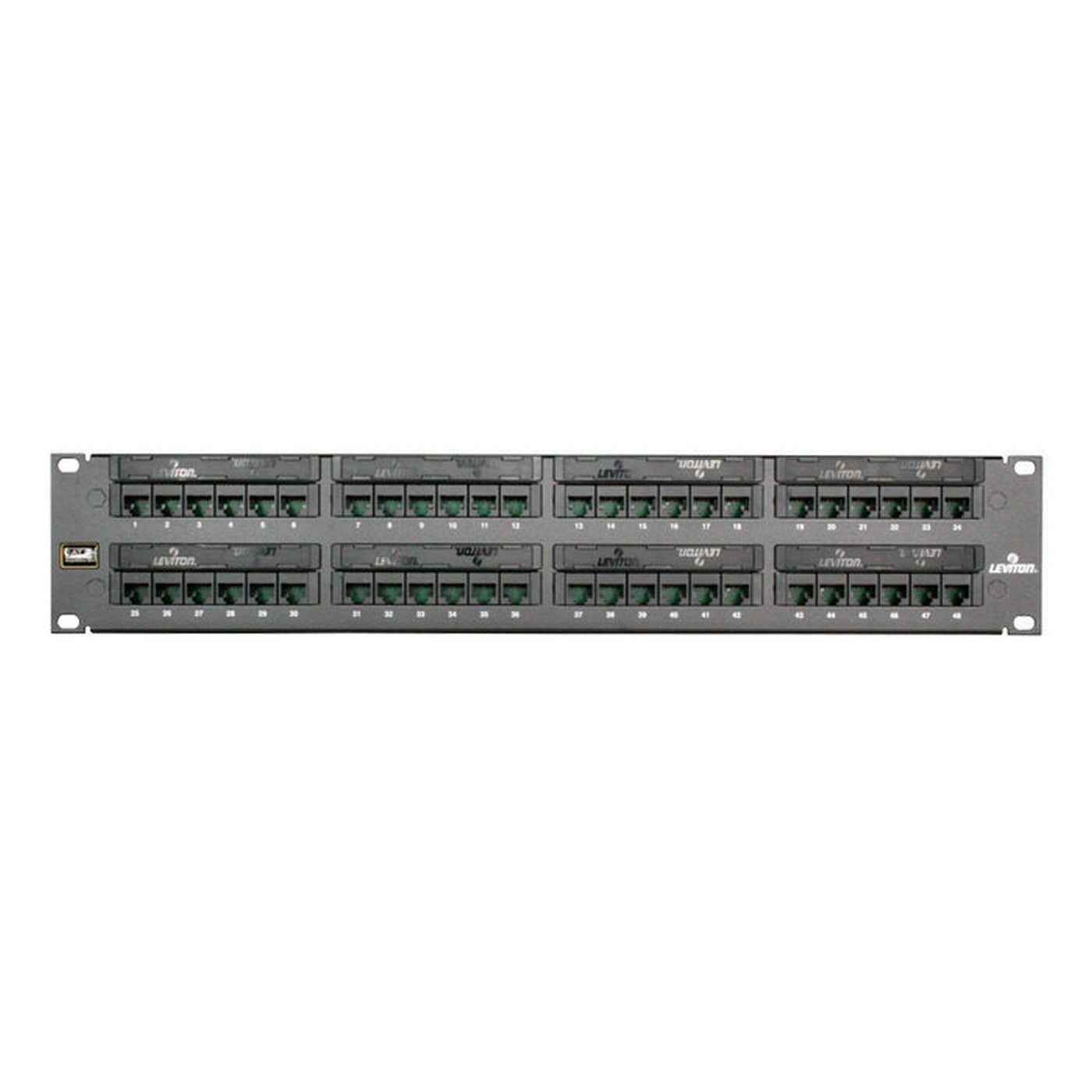 El panel de conexión Cat 5e Leviton 5G596-U48 es una solución confiable para redes estructuradas de alto rendimiento.