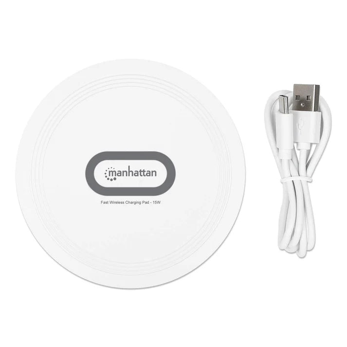 La Base de Carga Inalámbrica Rápida Manhattan 406024 es la solución ideal para cargar tus dispositivos sin cables y con total comodidad.