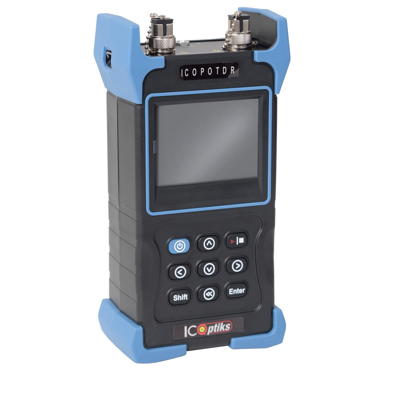 OTDR Palm PON para fibra monomodo con longitud de onda de 1310/1550/1650 nm y rango dinámico de 38/37/37 dB con acoplador SC/APC