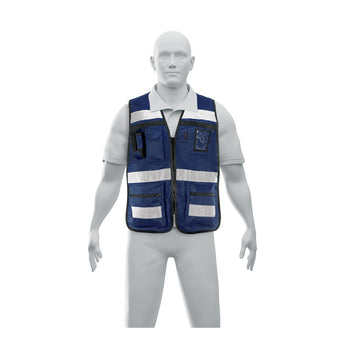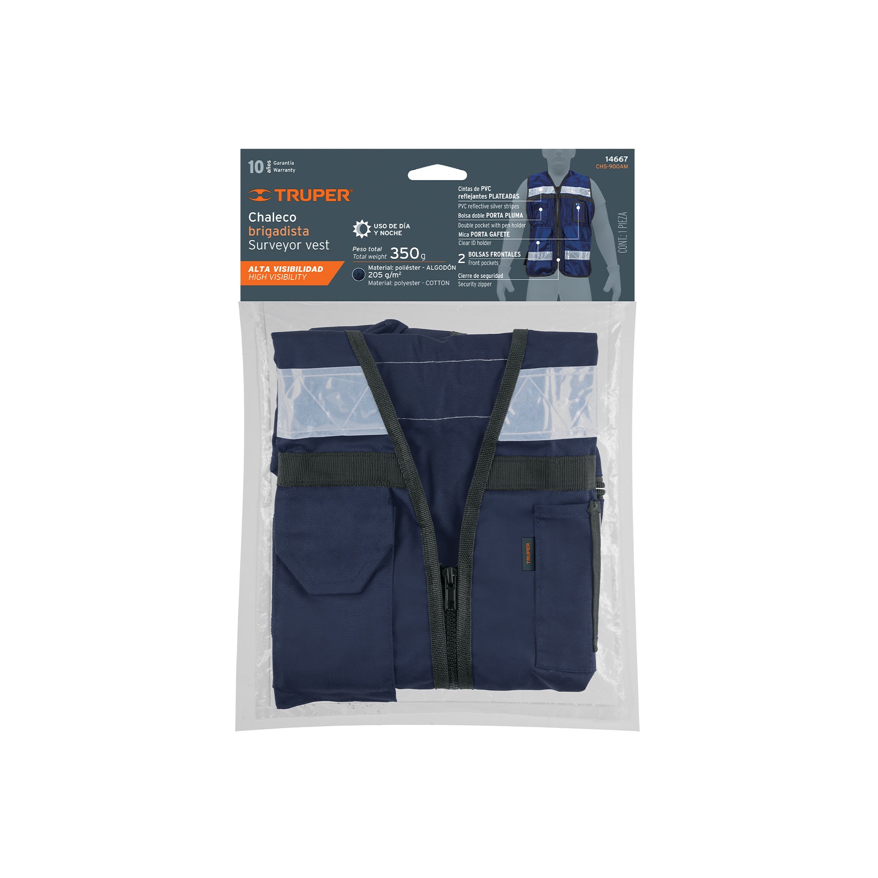 Chaleco de brigadista unitalla color azul marino con cintas reflejantes alta visibilidad