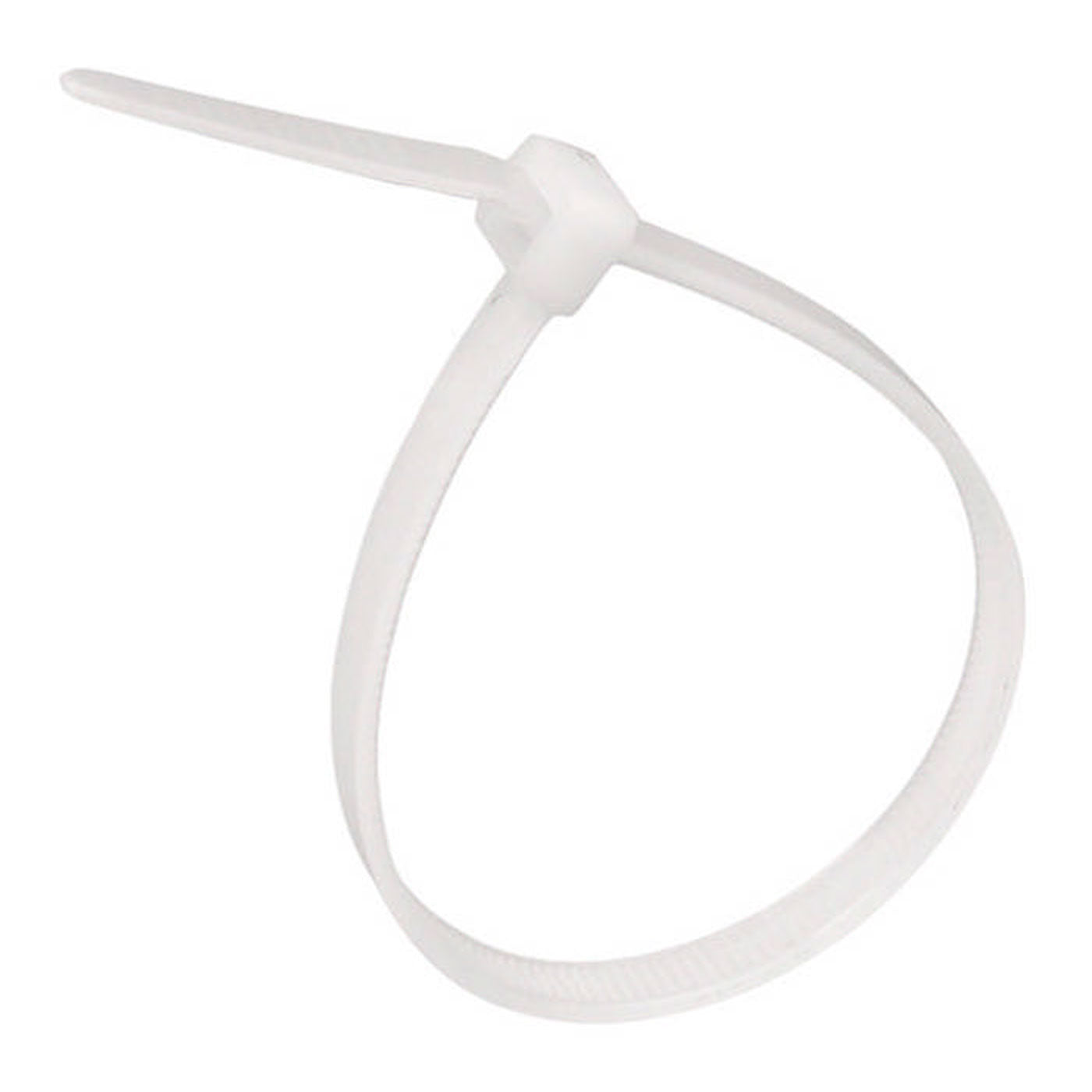Cincho plástico color natural de 200 x 4.6 mm, uso interior, resiste 22 kg, paquete con 100 piezas