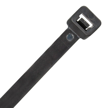 Cincho plástico color negro de 500 x 7.6 mm, resiste 55 kg, paquete con 100 piezas
