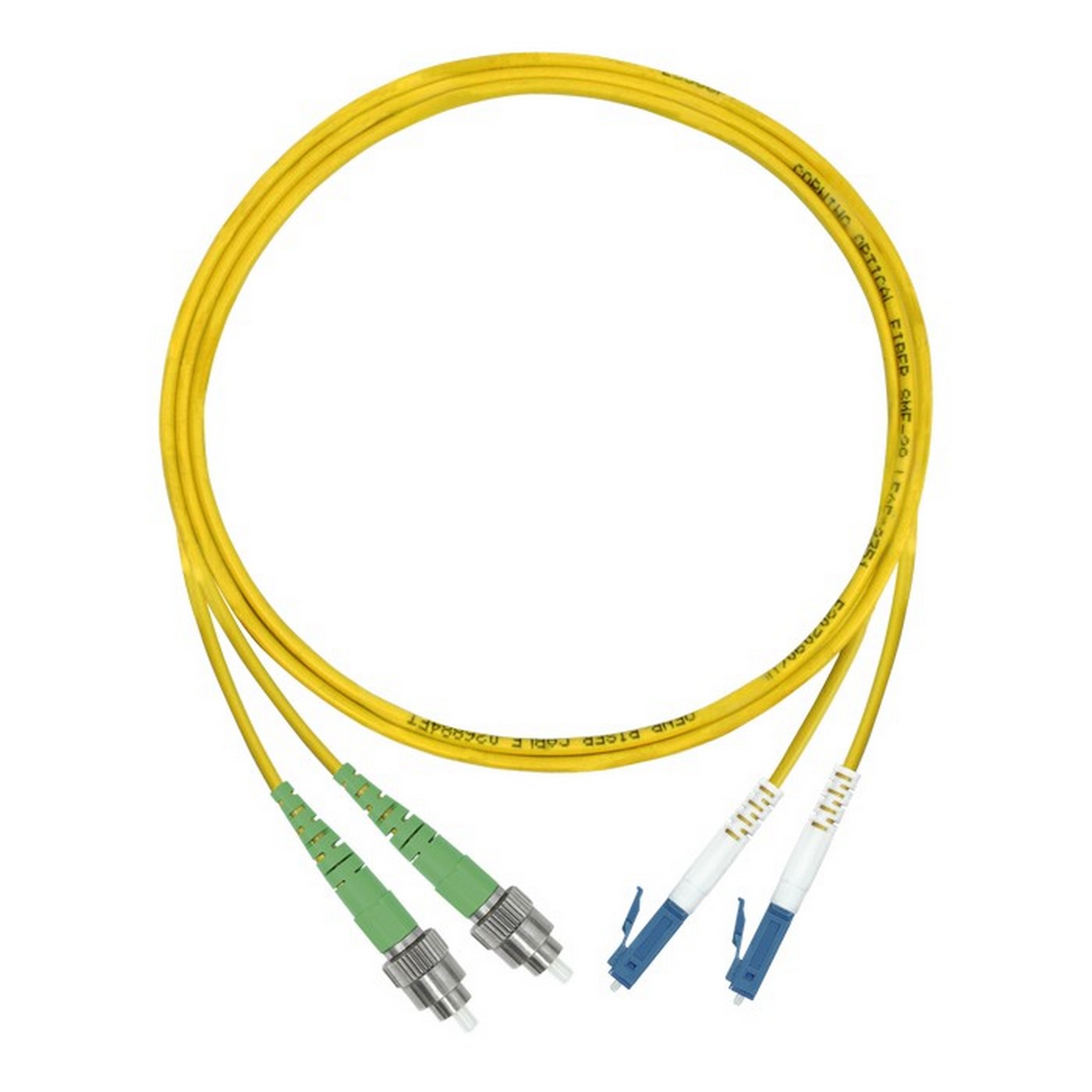 Jumper de fibra óptica dúplex monomodo G.652 D (9/125) cable de 2 mm cubierta LSZH conectores FC/APC - LC/UPC de 1 metro