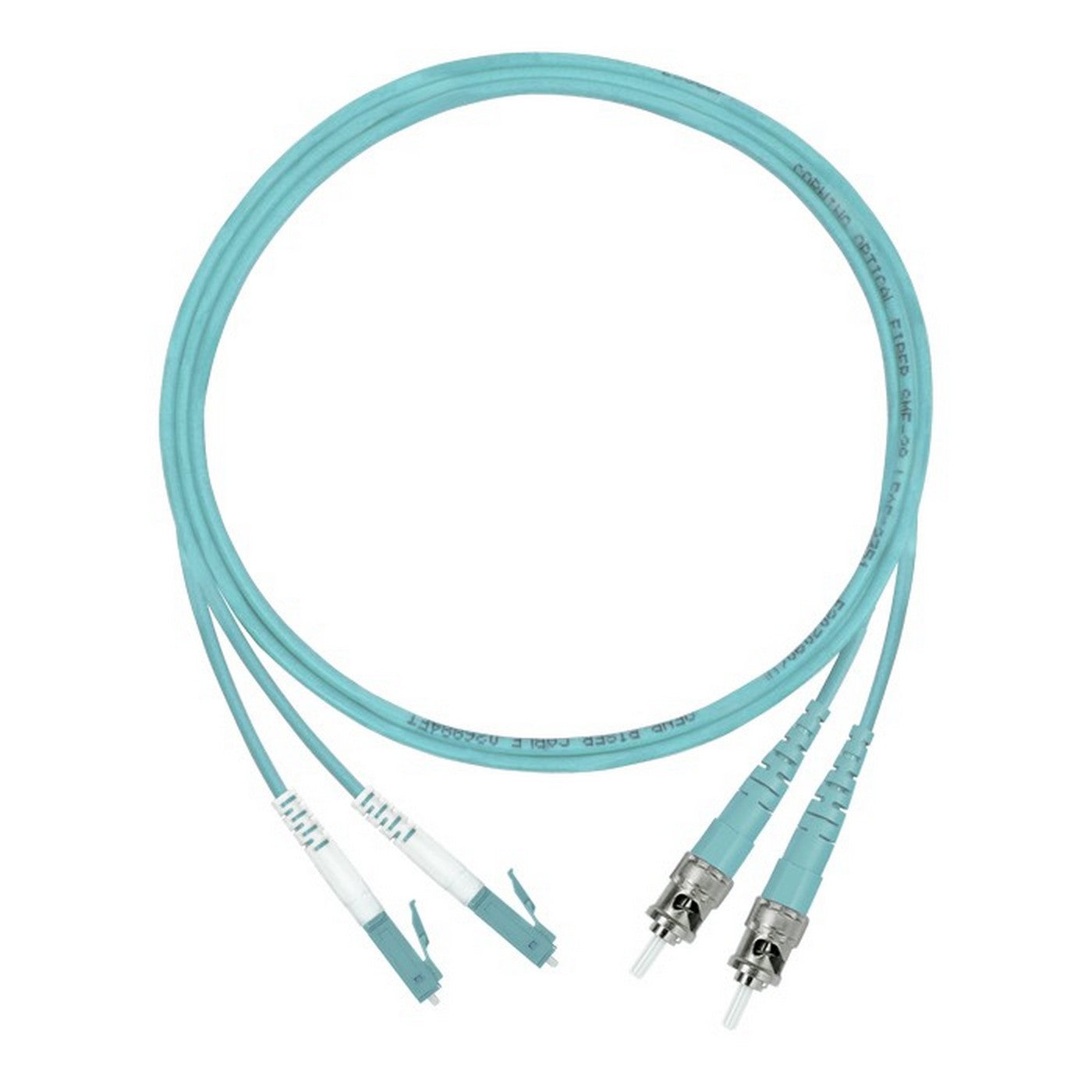 Jumper de fibra óptica dúplex multimodo OM3 (50/125) cable de 1.6 mm cubierta LSZH conectores LC/UPC - ST/UPC de 1 metro