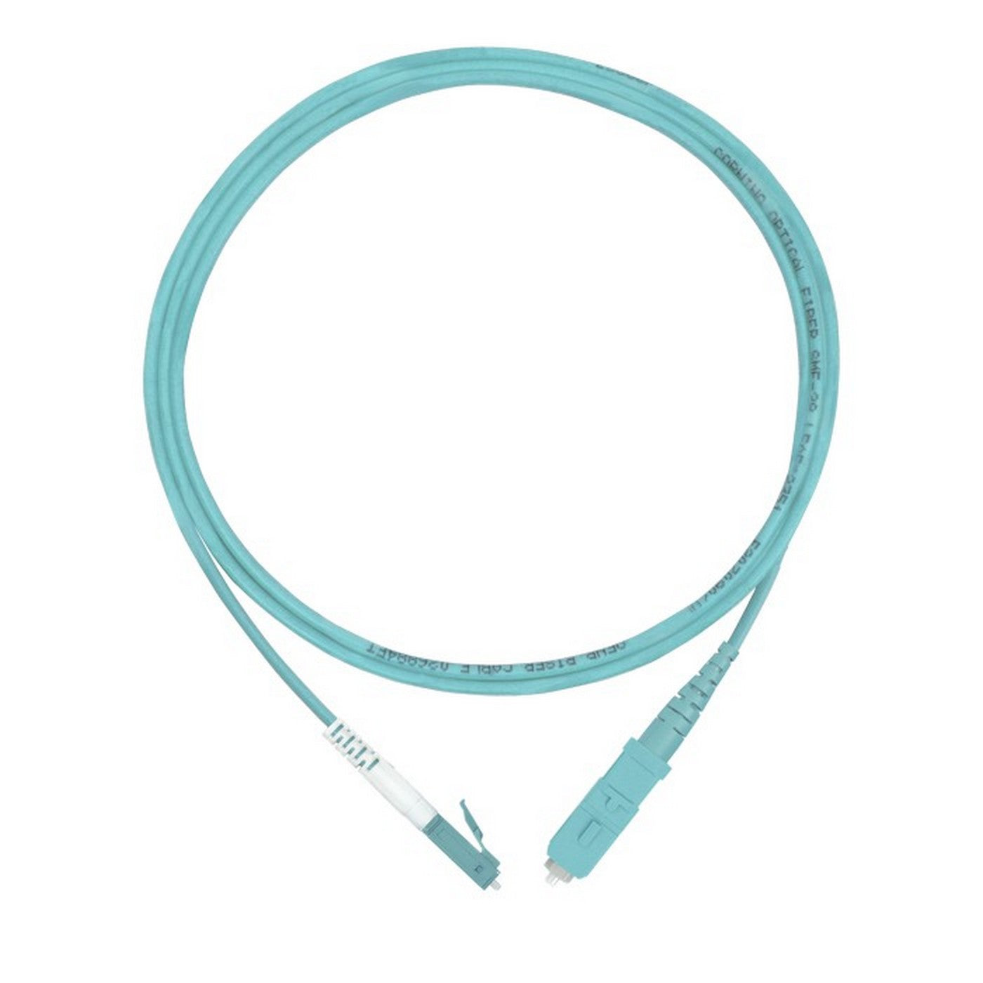 Jumper de fibra óptica simplex multimodo OM3 (50/125) cable de 1.6 mm cubierta LSZH conectores LC/UPC - SC/UPC de 15 metros