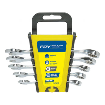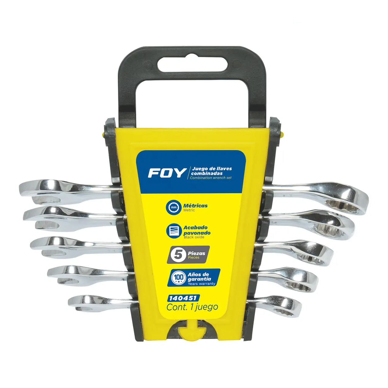 El juego de 5 llaves combinadas milimétricas es un set profesional pensado para tareas de mecánica, mantenimiento industrial y bricolaje. Cada llave combina boca fija y carraca en el otro extremo para ofrecer versatilidad en espacios reducidos y acceso a tornillería de cabeza hexagonal.
