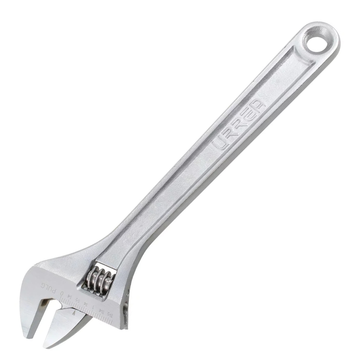 La llave ajustable Urrea cromada de 10" es la herramienta versátil imprescindible en talleres y obras. Su diseño ergonómico y construcción robusta garantizan precisión y confort al ajustar tuercas de distintos diámetros.