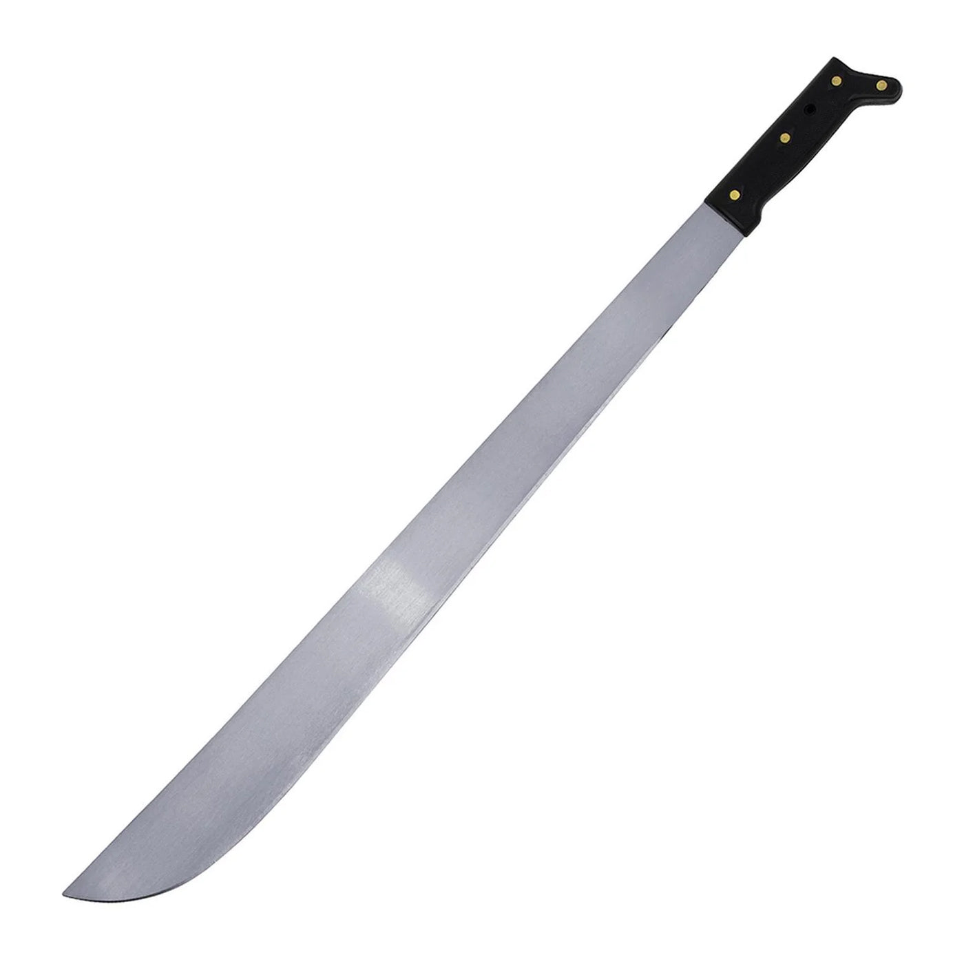 Machete recto de 18" de largo con cacha negra, mango ergonómico antiderrapante