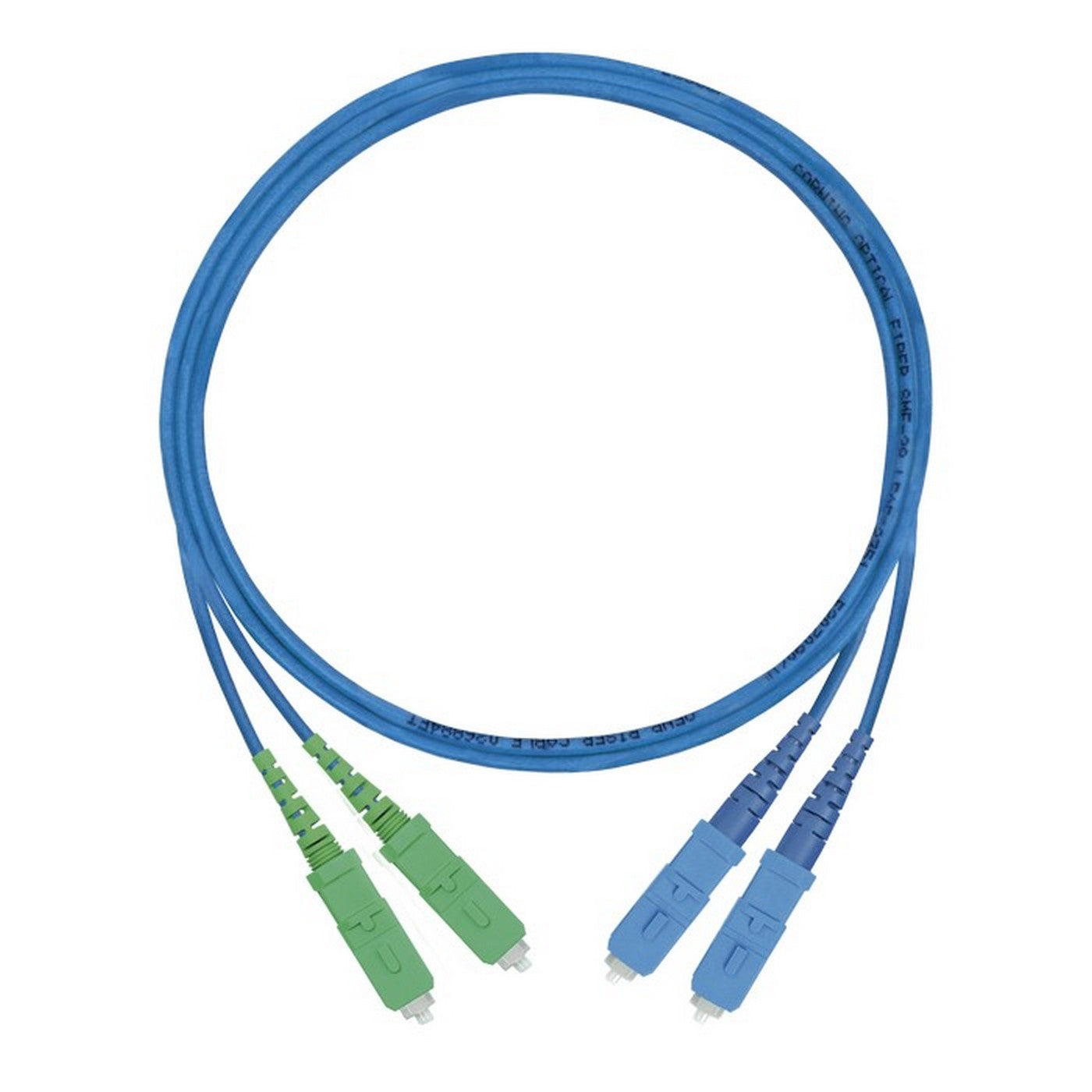 Jumper de fibra óptica dúplex monomodo G.657 A2 (9/125), cable de 1.6 mm, cubierta LSZH, conectores SC/APC - SC/UPC de 20 metros