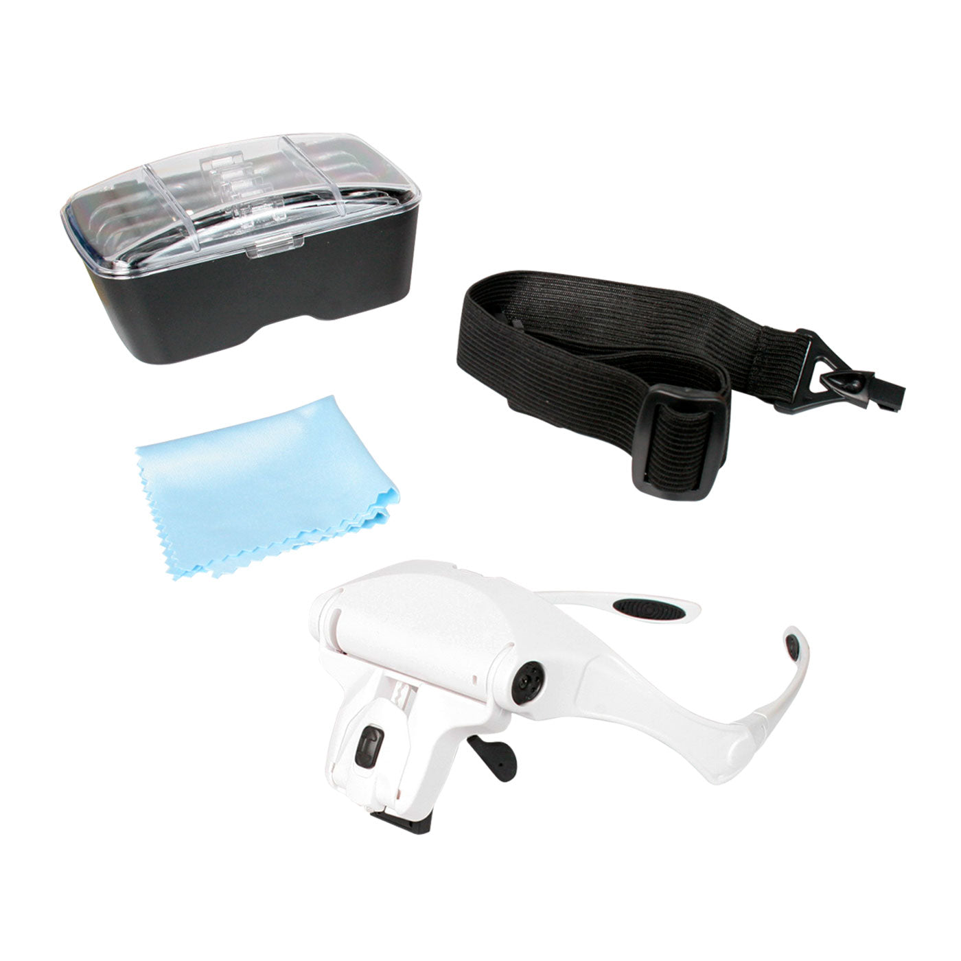- Lentes de empalmador (1X, 1.5X, 2X, 2.5X y 3.5X) con lámpara led
