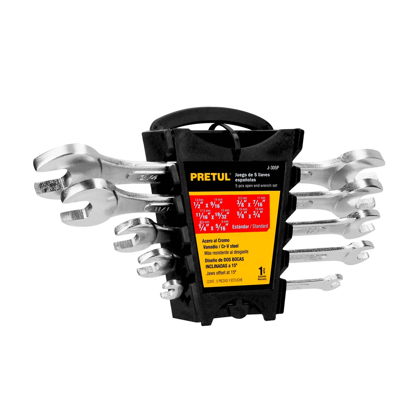 Juego de 5 llaves estándar españolas de 1/4 x 5/16", 3/8 x 7/16", 1/2 x 9/16", 11/16 x 19/32" y 5/8 x 3/4"