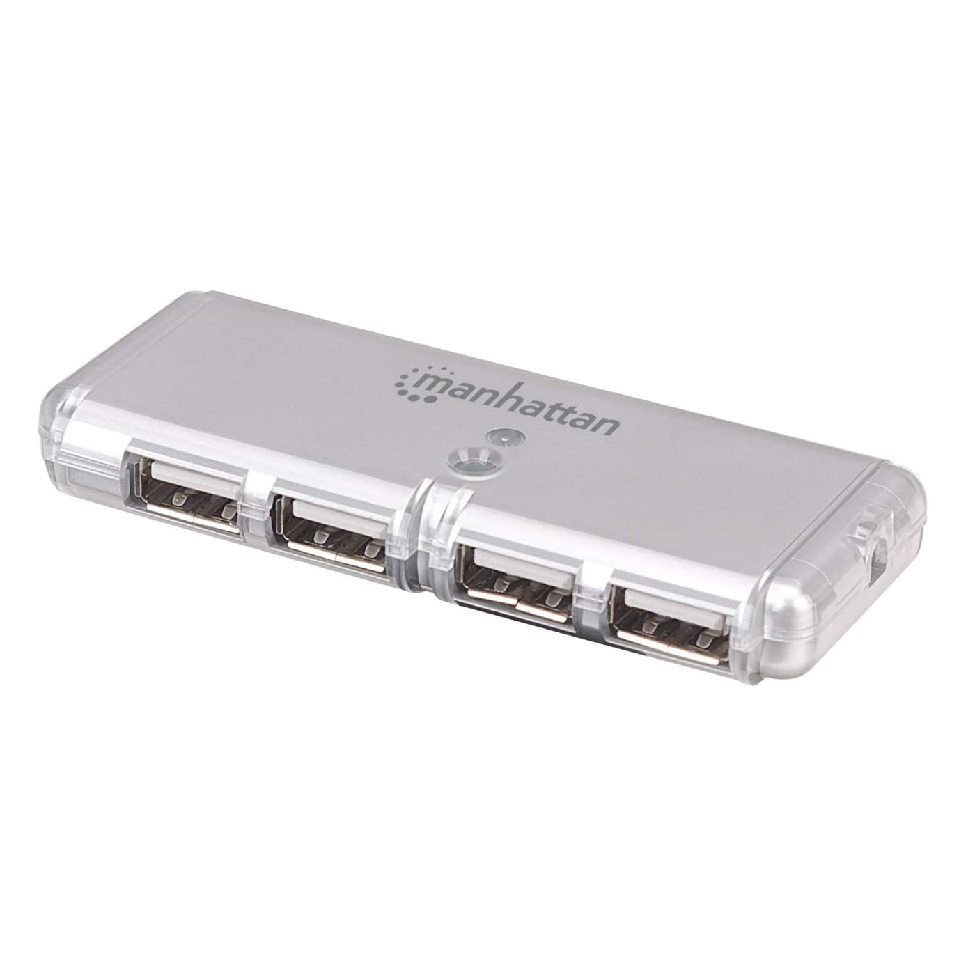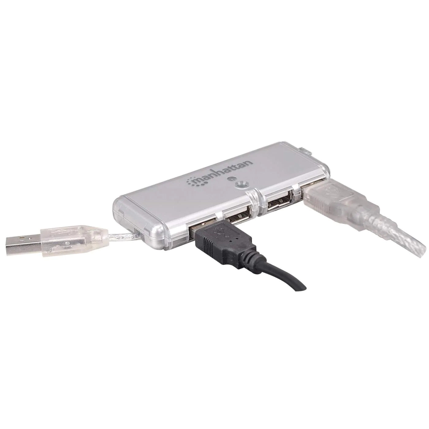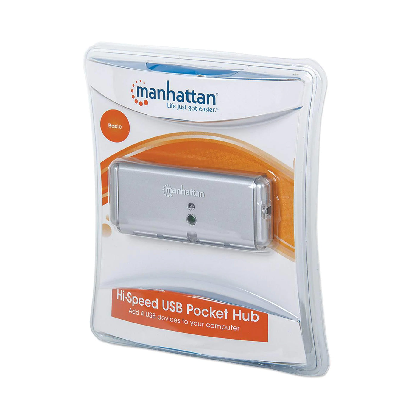 Expande la conectividad de tu computadora con el Hub USB de Gran Velocidad para Bolsillo Manhattan 160599, diseñado para añadir cuatro puertos USB adicionales sin ocupar espacio innecesario.