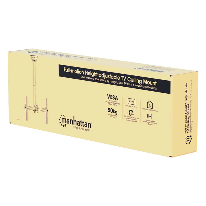 El Soporte de Techo Universal Manhattan 462204 es la solución ideal para montar televisores de 37" a 70" con total seguridad y ajuste personalizado.