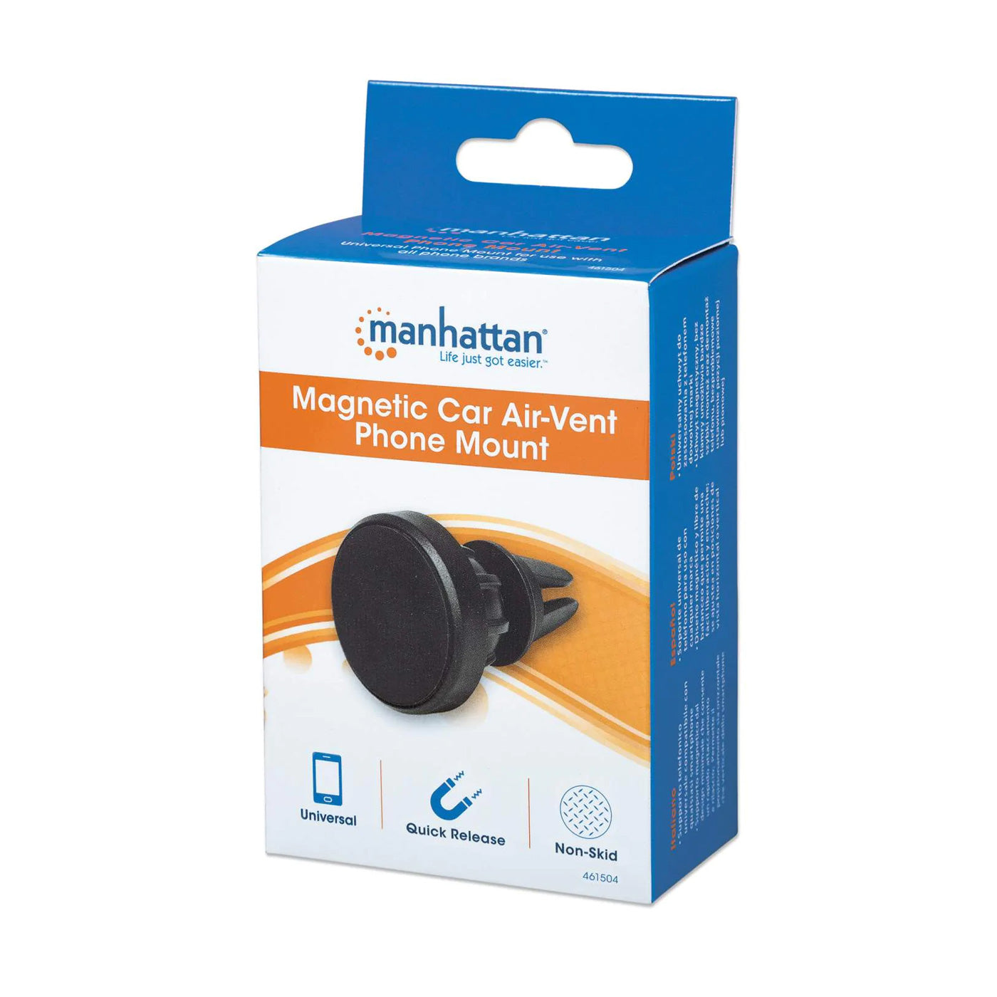 Mantén tu teléfono siempre accesible y seguro con el Soporte Magnético de Teléfono Manhattan 461504, diseñado para una fijación estable y sin balanceo en la ventila de tu automóvil.
