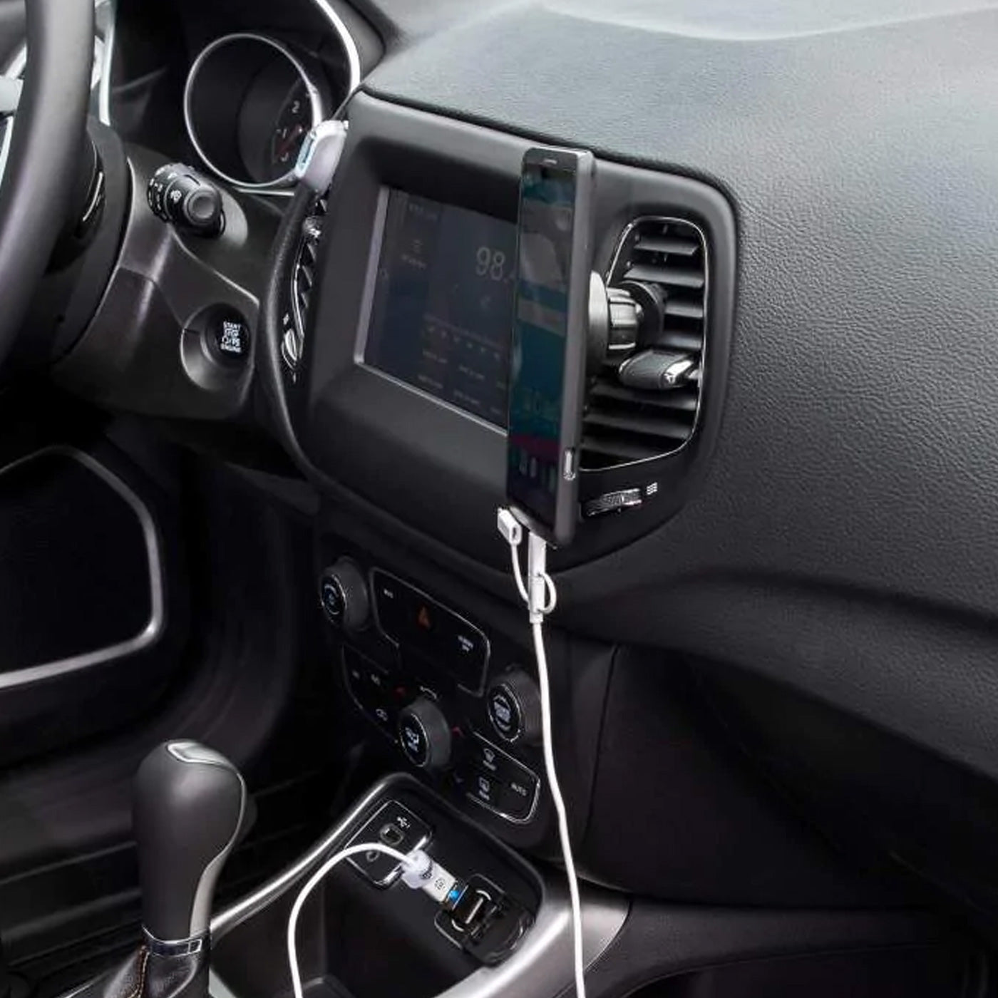 • Se engancha fácilmente a la ventila del auto sin herramientas.