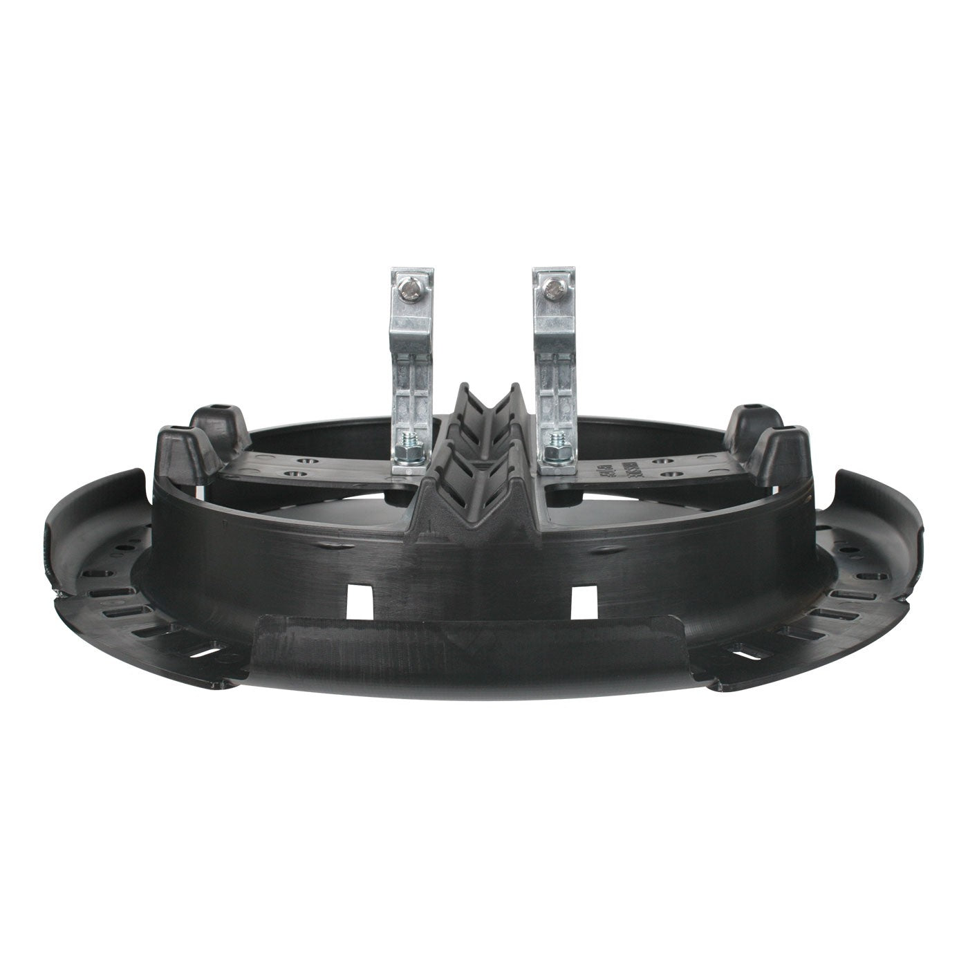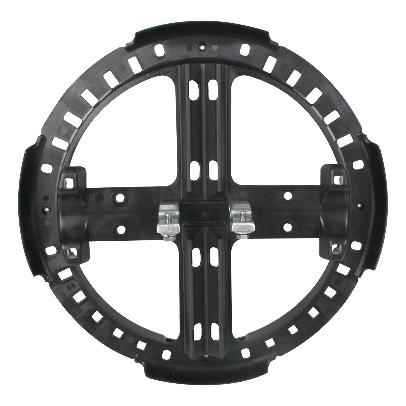 Raqueta Cable Wheel 360° de 14" para almacenaje y administración de cable de fibra óptica, para cable ADSS o mensajero. Incluye cinchos para sujeción de cable y 2 brackets para mensajero de 1/4"