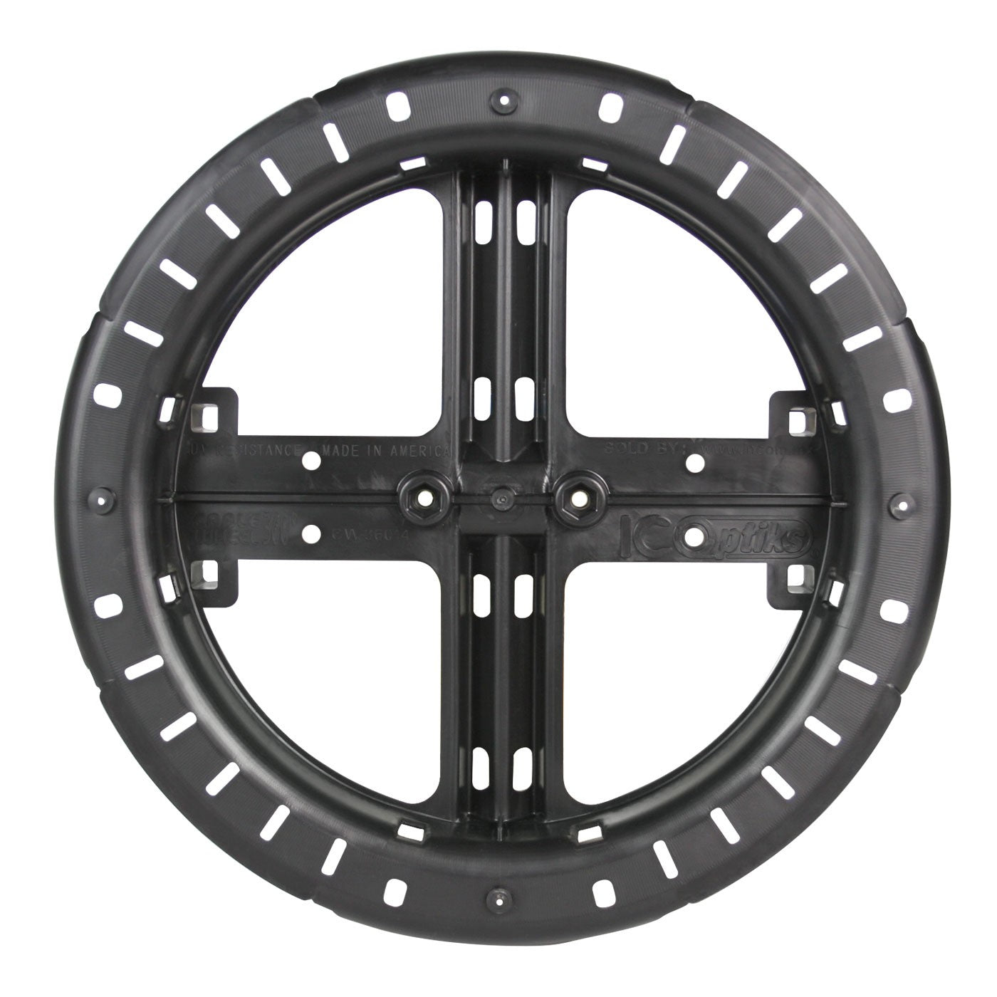 Raqueta cable wheel 360° de 14" para almacenaje y administración de cable de fibra óptica, para cable ADSS o mensajero. Incluye cinchos para sujeción de cable
