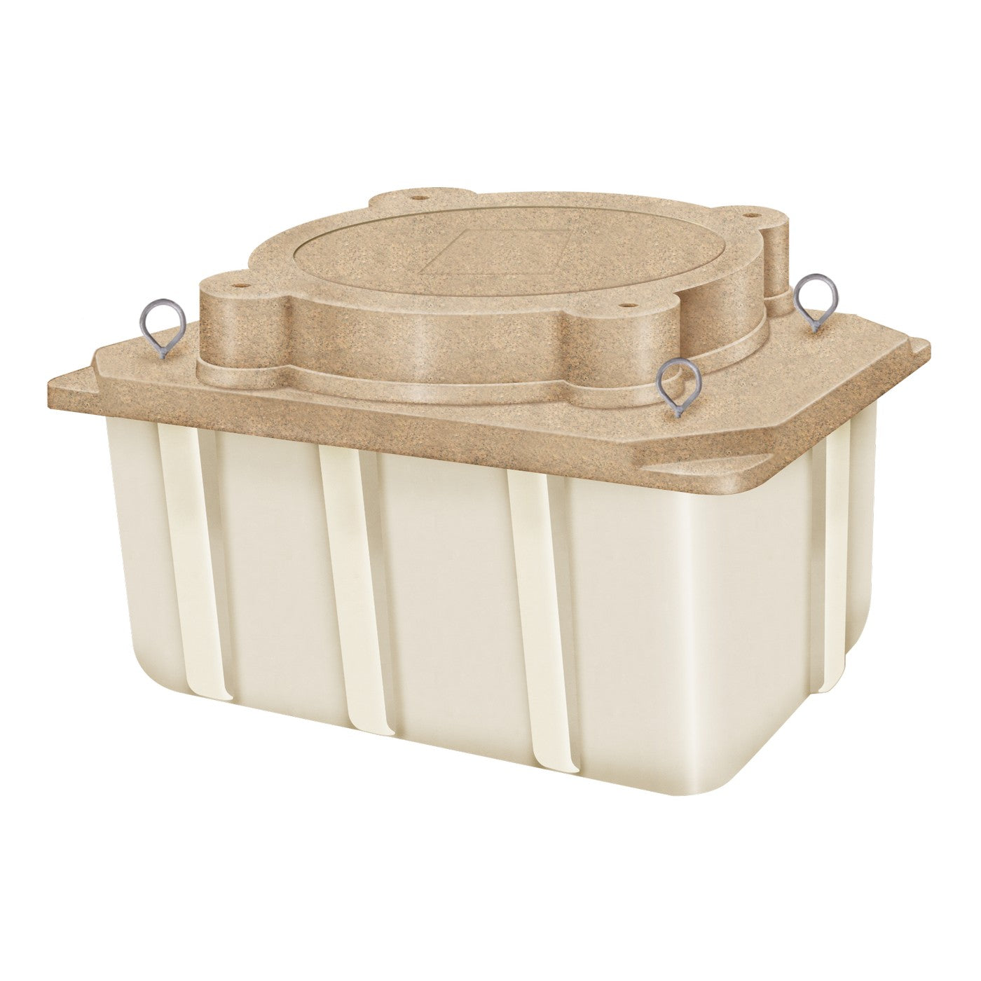 Registro prefabricado de concreto polimérico tipo micromanhole de 4 x 2 x 2' con tapa de concreto polimérico leyenda "GENERAL" para tráfico pesado, resistente 20 toneladas