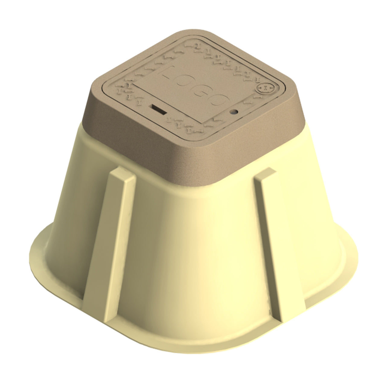 Registro prefabricado de concreto polimérico rectangular sin fondo de 40 x 40 x 60 cm con tapa de concreto polimérico leyenda "GENERAL" para tráfico ligero, resistente 20 toneladas