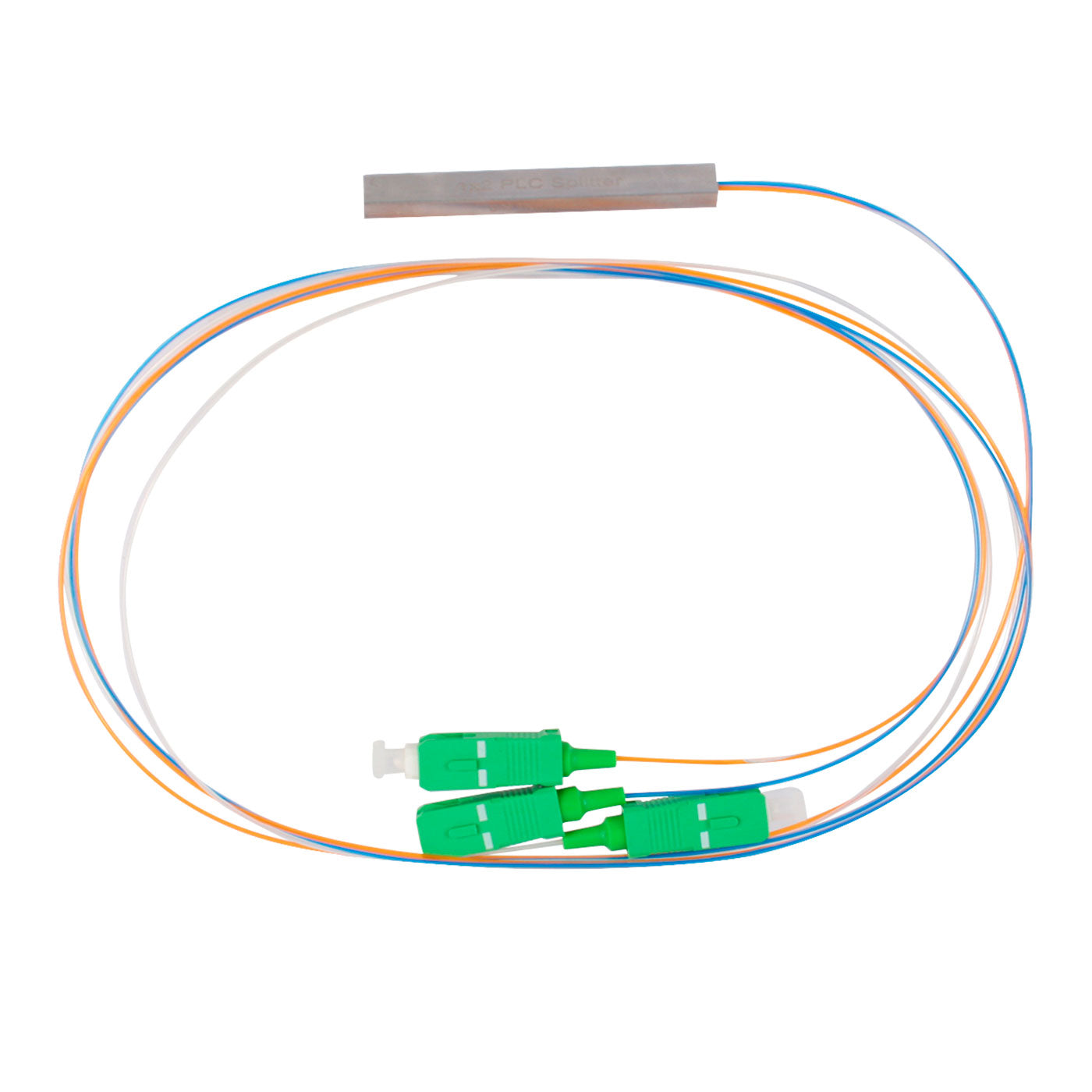 Splitter mini módulo PLC de 1x2 con fibra G.657 A1. Entrada: 900 µm, conector SC/APC. Salida: 900 µm, conectores SC/APC