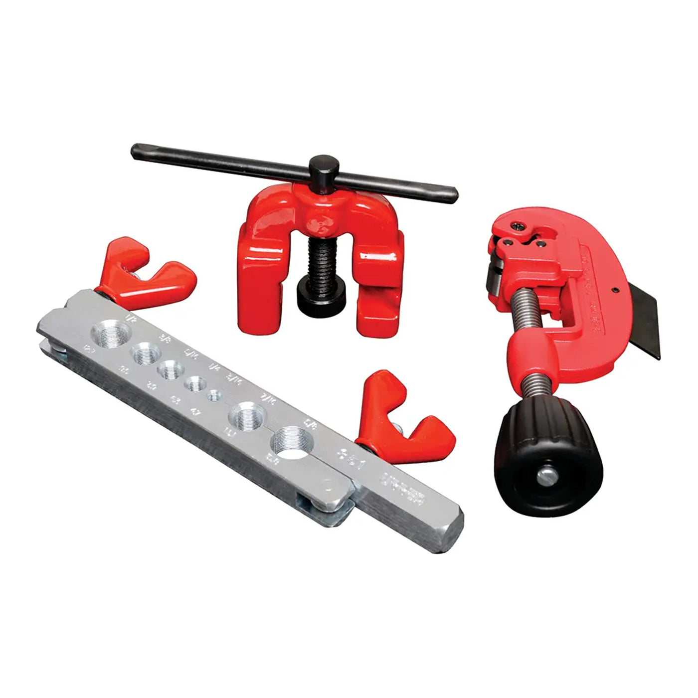 Juego de avellanador, cortatubos y prensa ajustable de 3/16" a 5/8", 3 piezas
