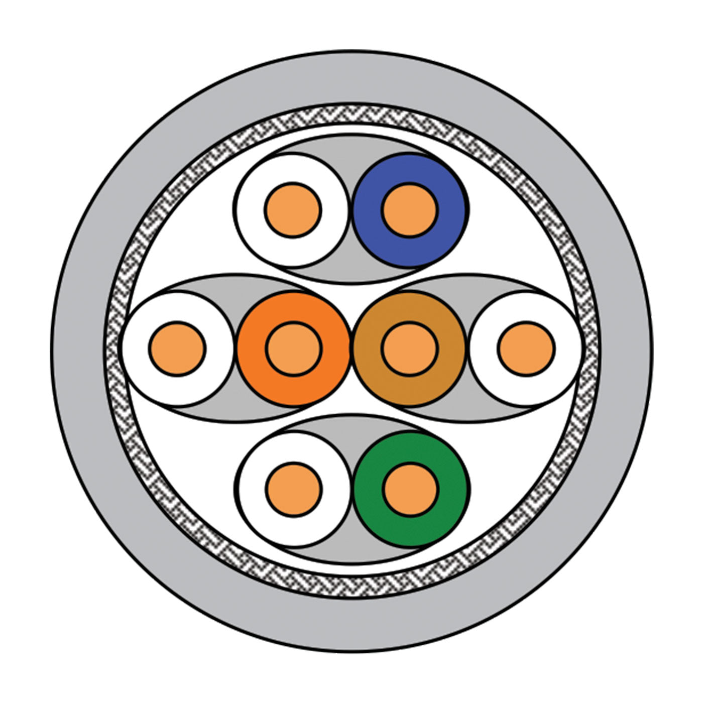Cable SFTP sólido categoría 6A con 4 pares de 23 AWG, cubierta LSZH color gris, bobina de 500 metros