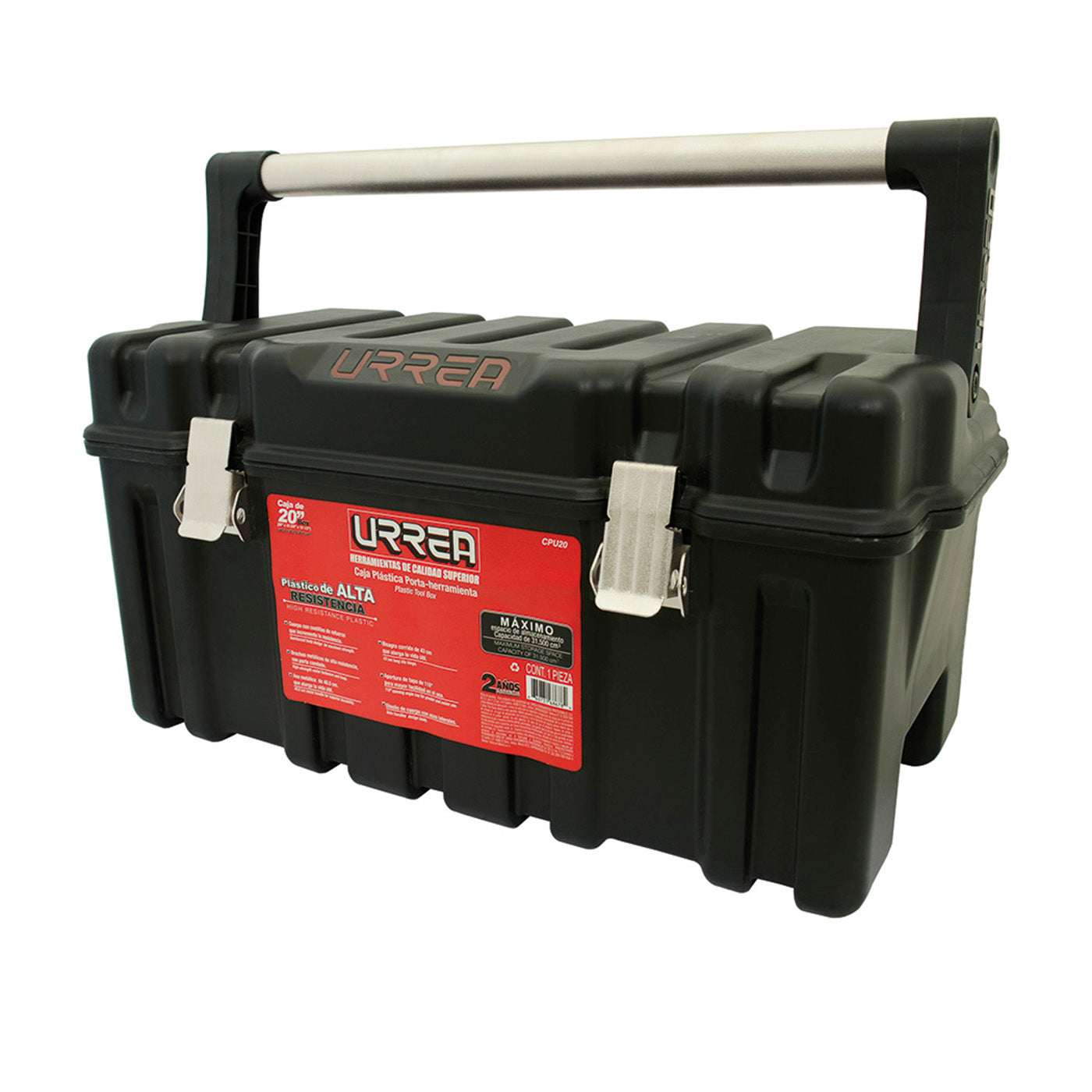 - Caja portaherramientas plástica de 21" color negro con broches metálicos sin charola