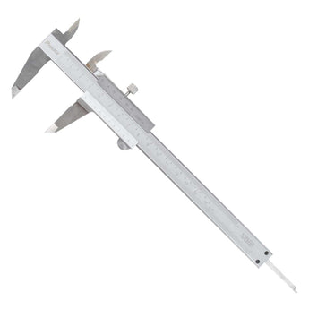 "Calibrador" : "Vernier", "Material" : "Acero inoxidable", "Rango" : "0 ~ 150 mm / 0 ~ 6 in", "Precisión de medición" : "± 0.02 mm/0.001 in", "Resolución" : "0.02 mm / 0.001 in", "Longitud del cuerpo" : "150 mm/6 in"Unidad de venta: