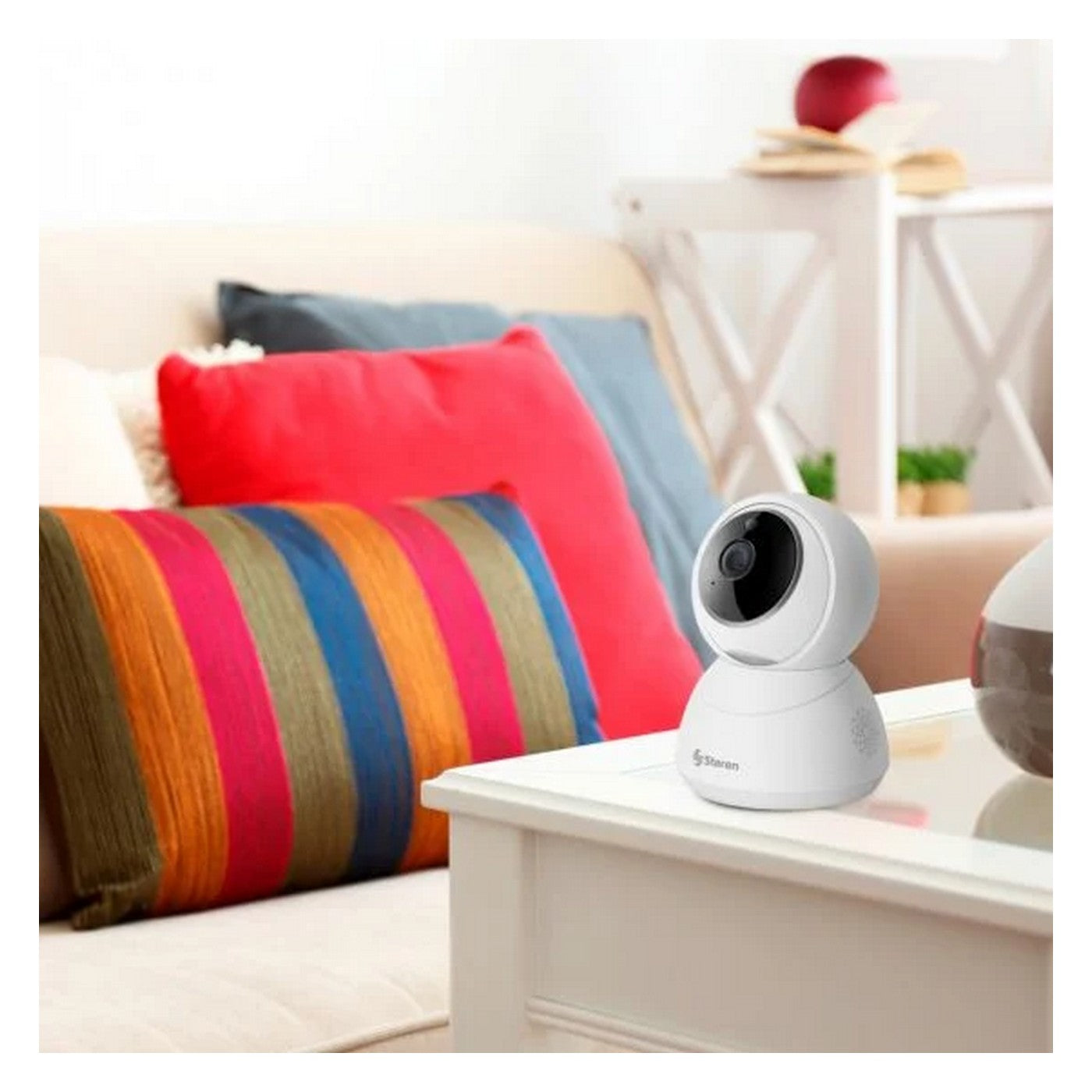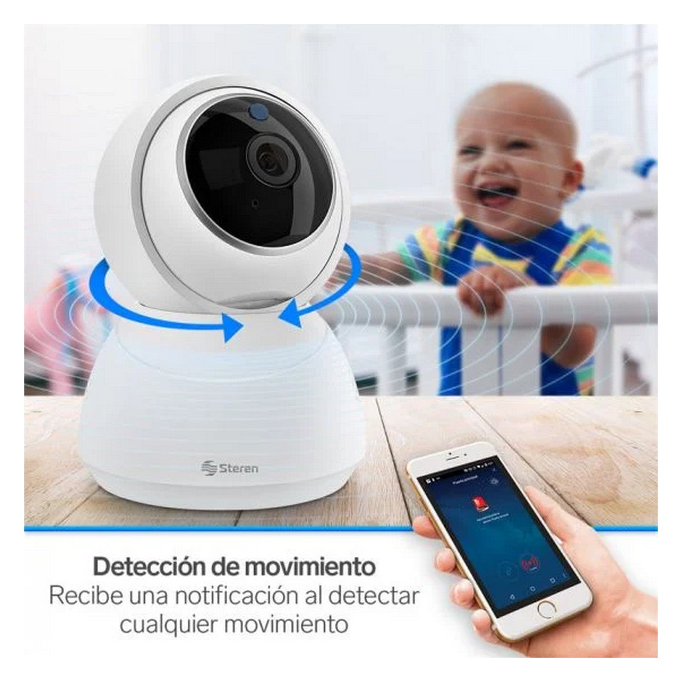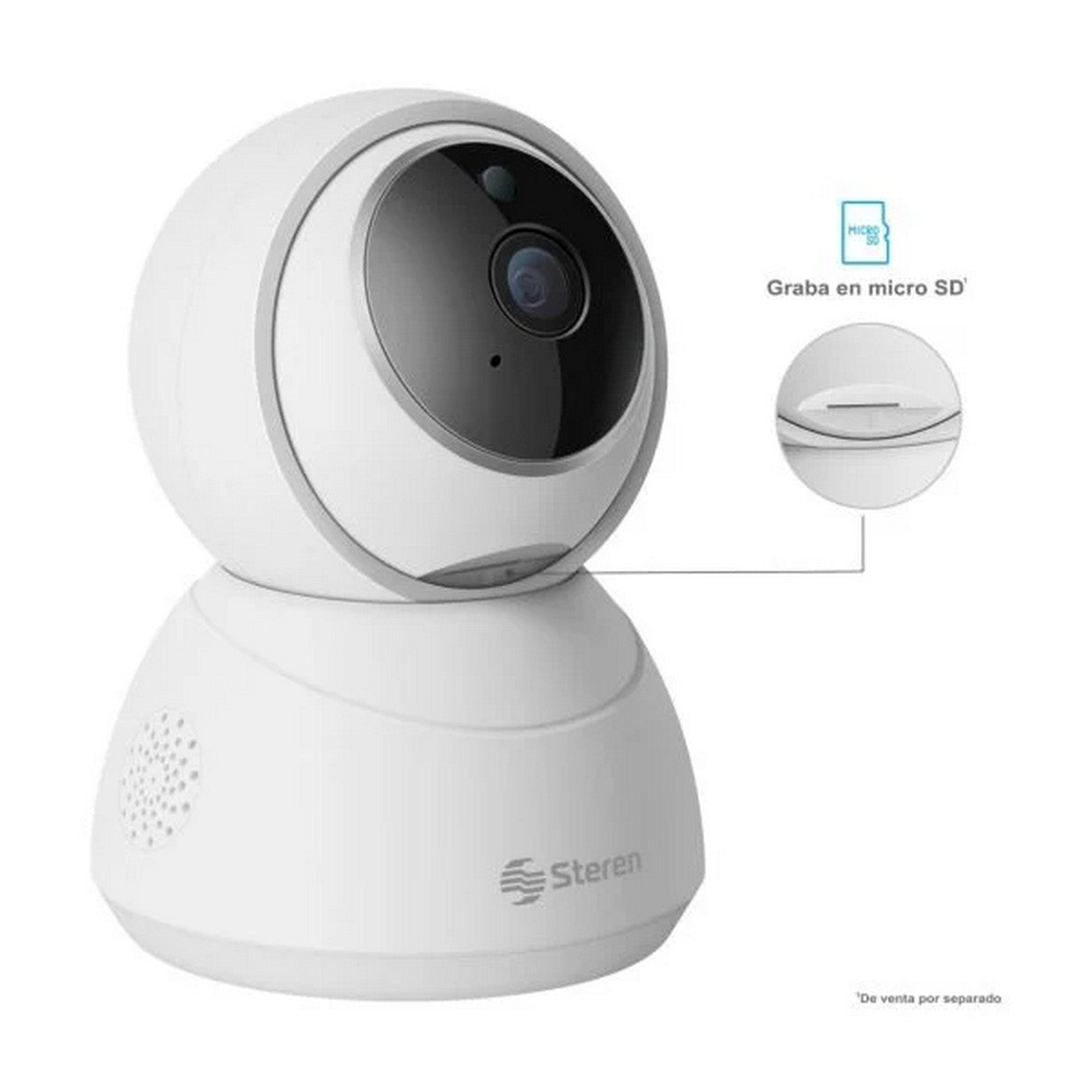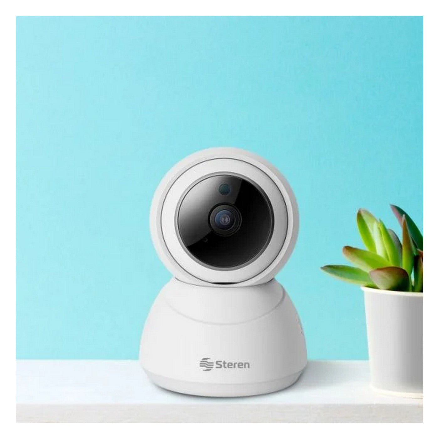 Con esta cámara de seguridad Wi-Fi, monitorea cualquier lugar a través de tu celular. Conéctala por Wi-Fi o cable Ethernet a tu modem y configúrala con nuestra App Steren Home (disponible en App Store* y Google Play*), para controlar su movimiento y todas sus funciones.