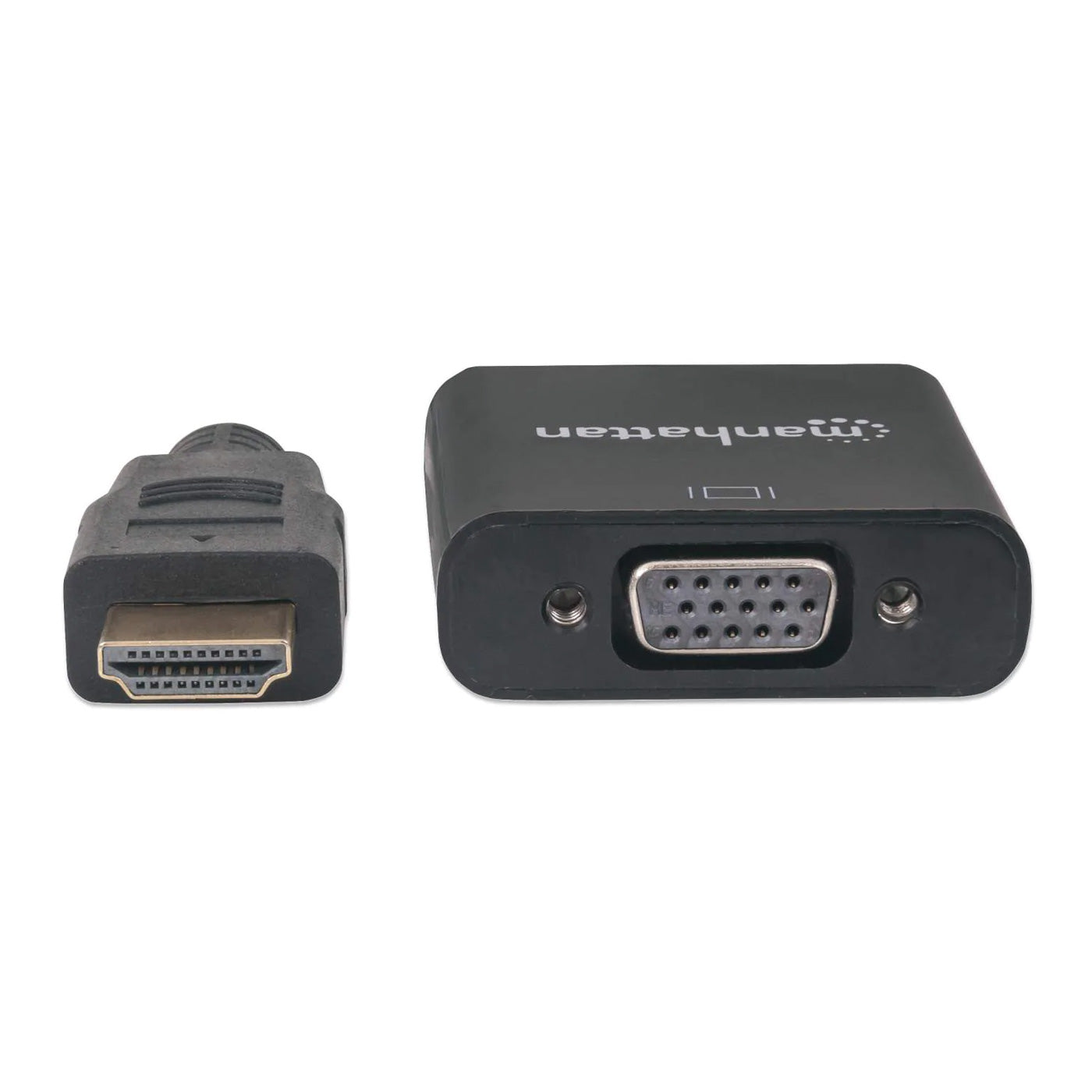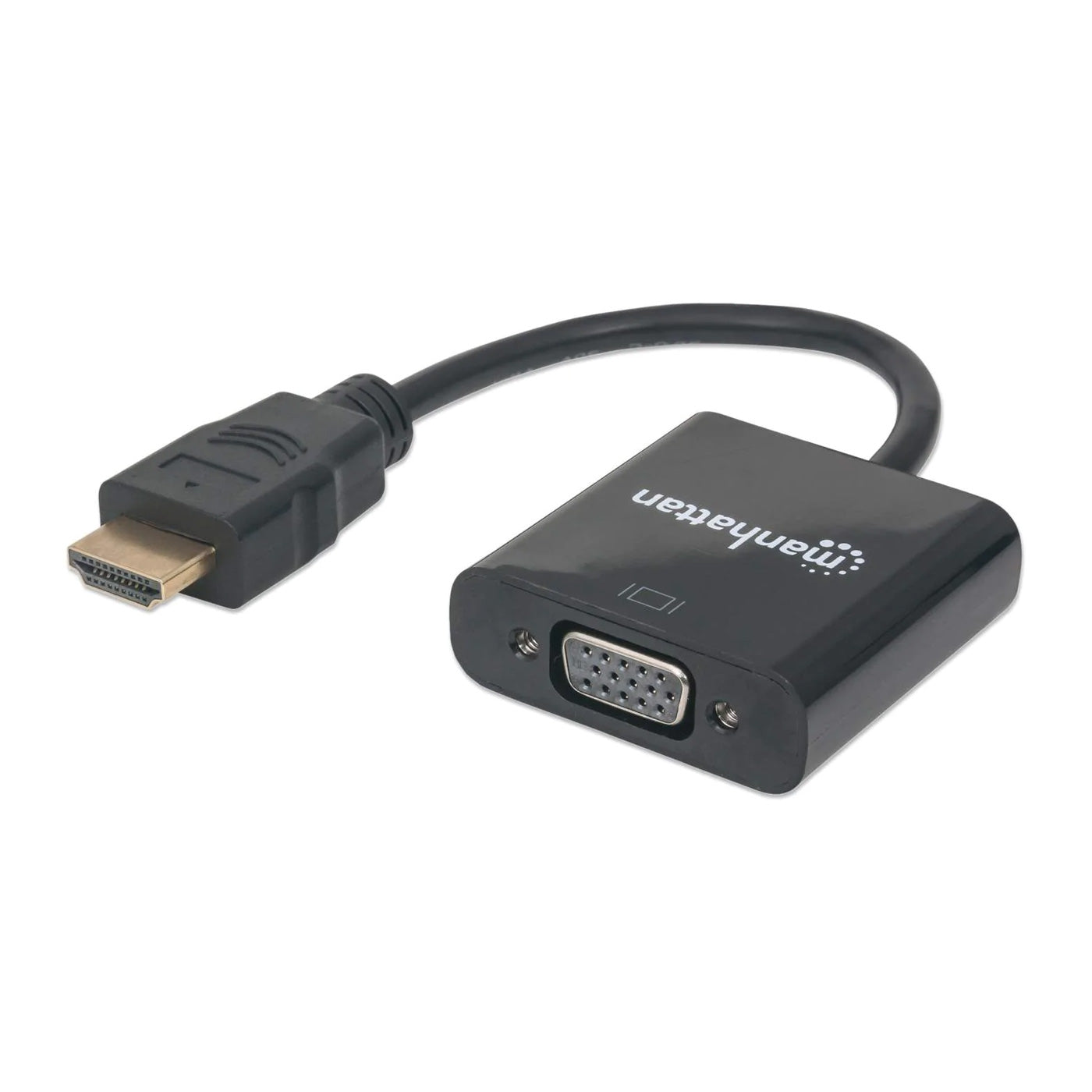 Conecta fácilmente tus dispositivos con el Conversor HDMI a VGA Manhattan 151467, una solución práctica para transmitir video digital de alta calidad a pantallas VGA sin complicaciones.