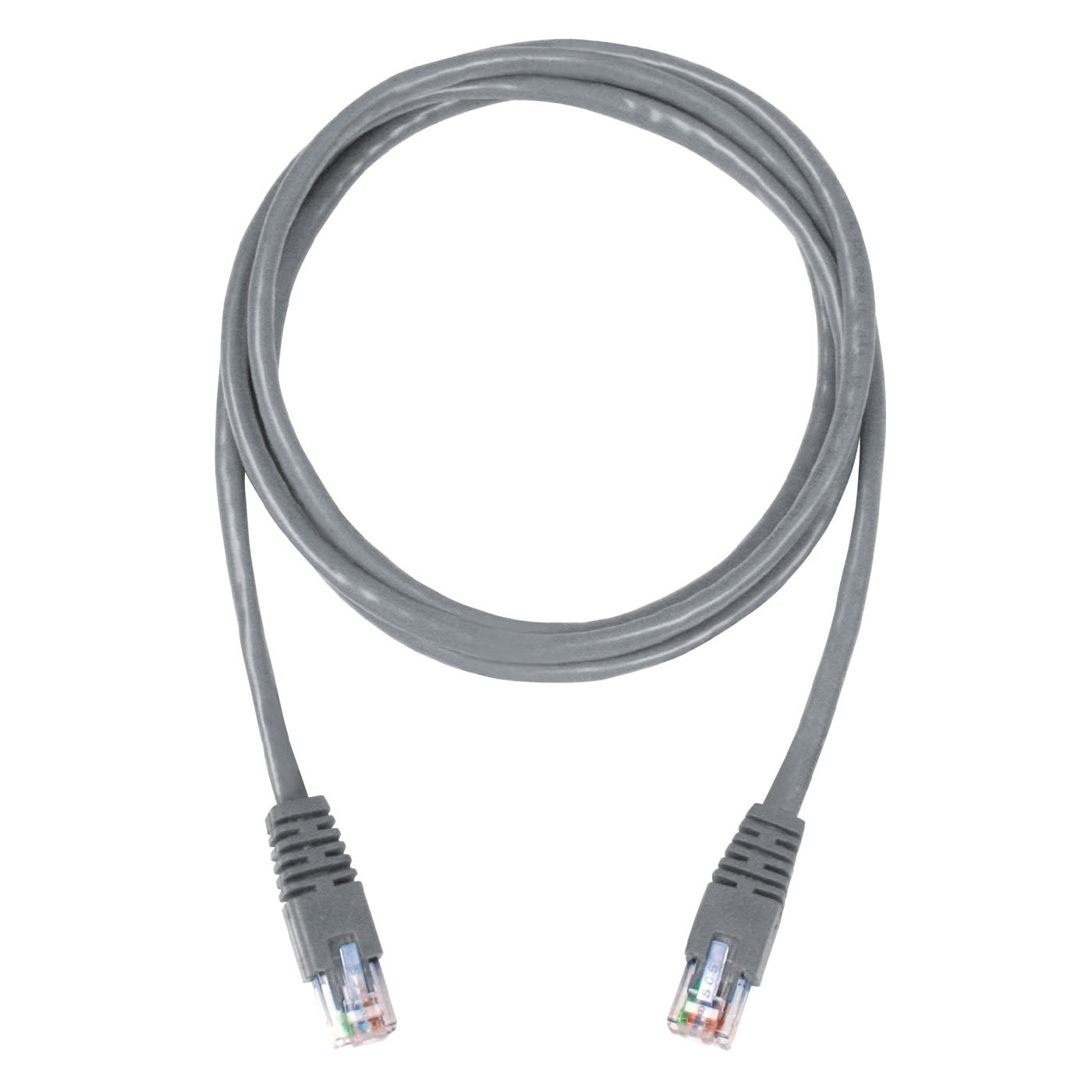 Cordón de parcheo UTP categoría 5e con conectores RJ45, forro de PVC color gris de 1.5 metros.