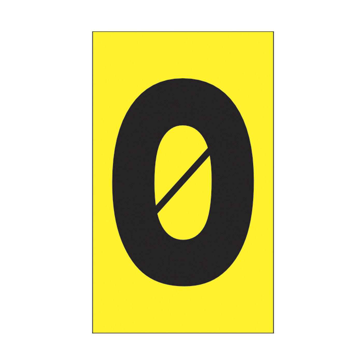 - Etiqueta adhesiva reflejante de 5 x 3" con fondo color amarillo e impreso color negro leyenda número "0"