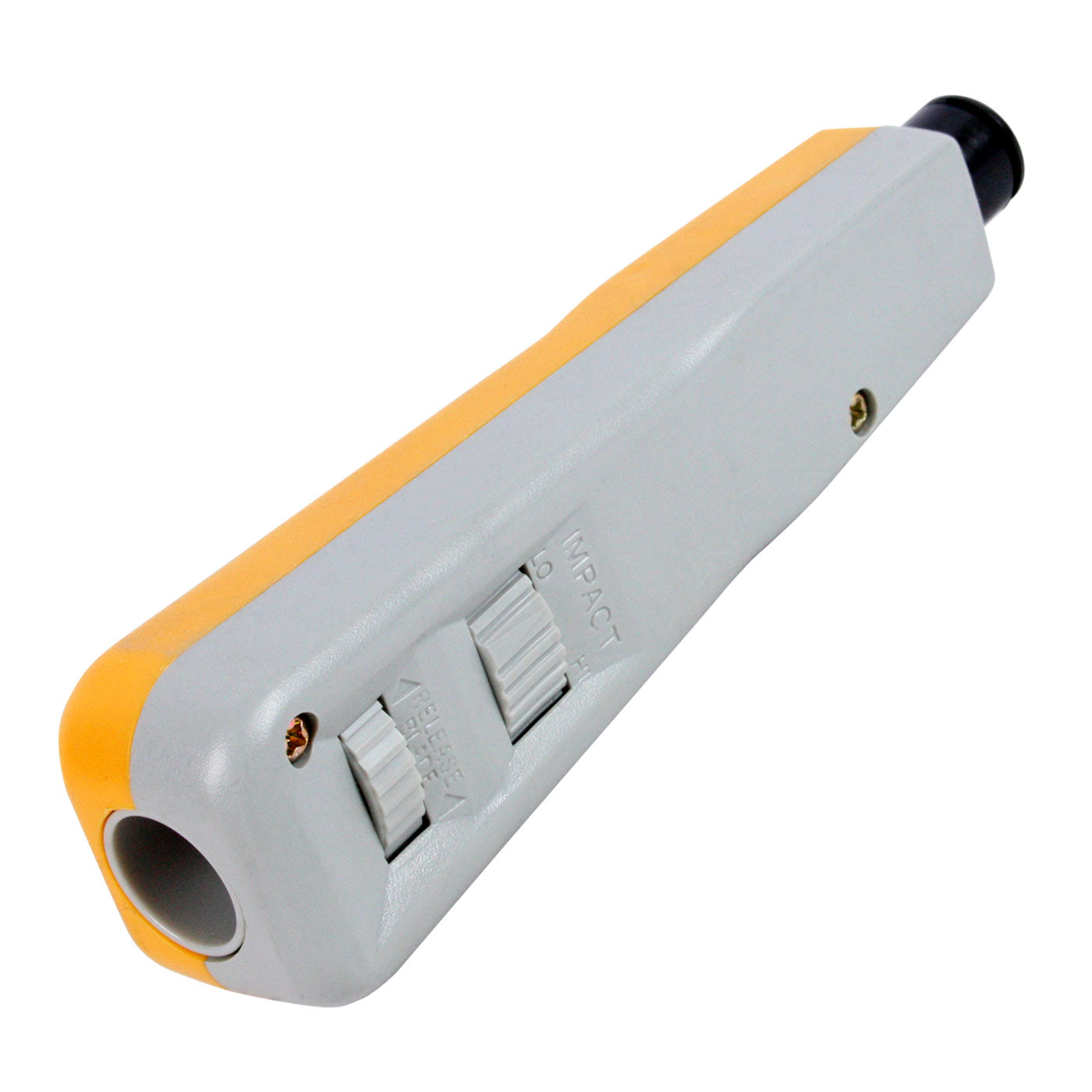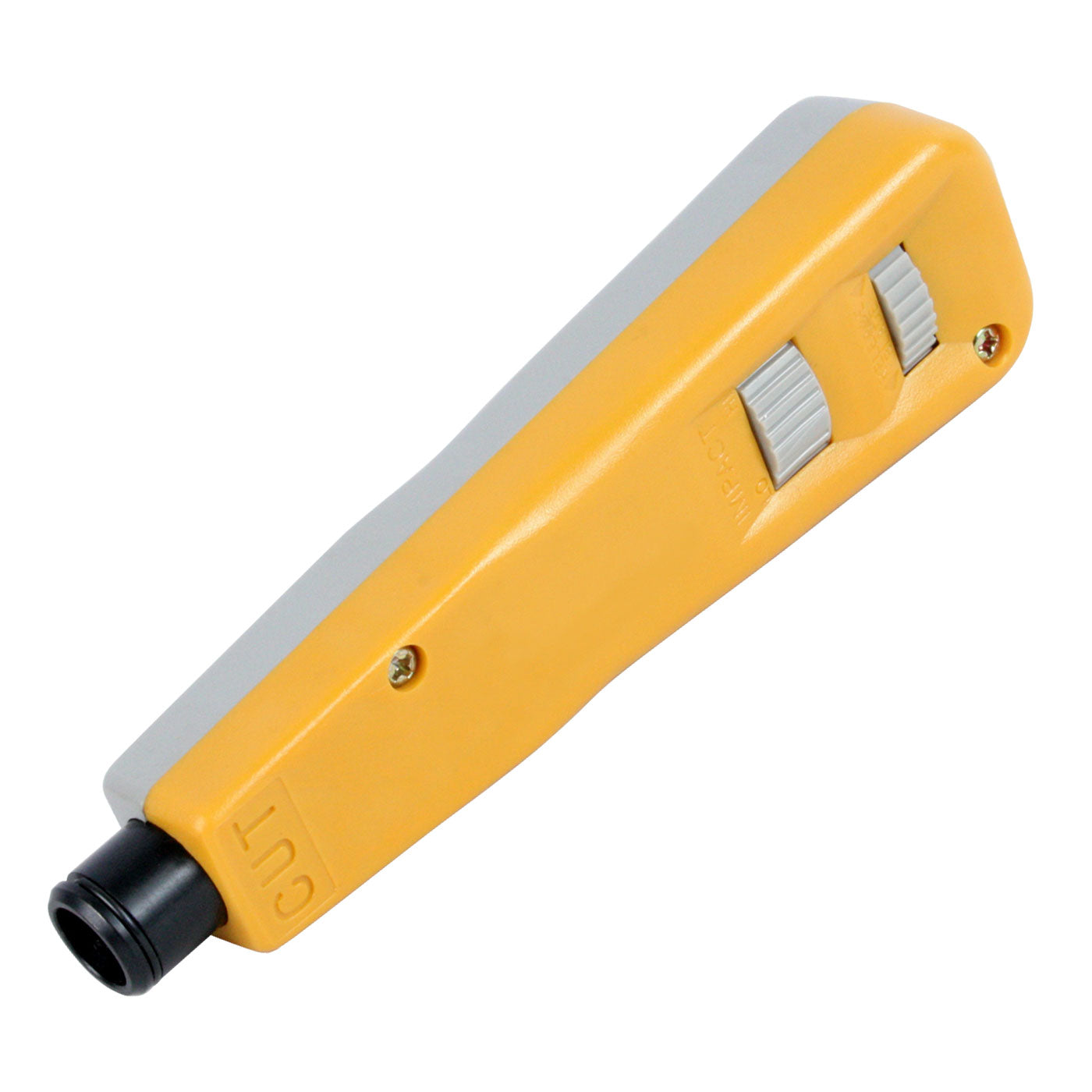 La herramienta de impacto y corte para terminaciones de cableado estructurado. Se utiliza para realizar conexiones rápidas y seguras en bloques IDC de tipo 110 y 66, facilitando la instalación de redes de comunicación.