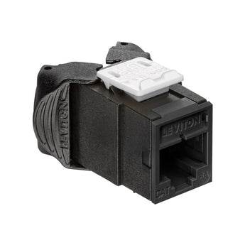 Jack modular Leviton ATLAS-X1 Cat 6A QuickPort, color negro. Diseño de alto rendimiento con tecnología Retention Force y protección contra diafonía exógena.