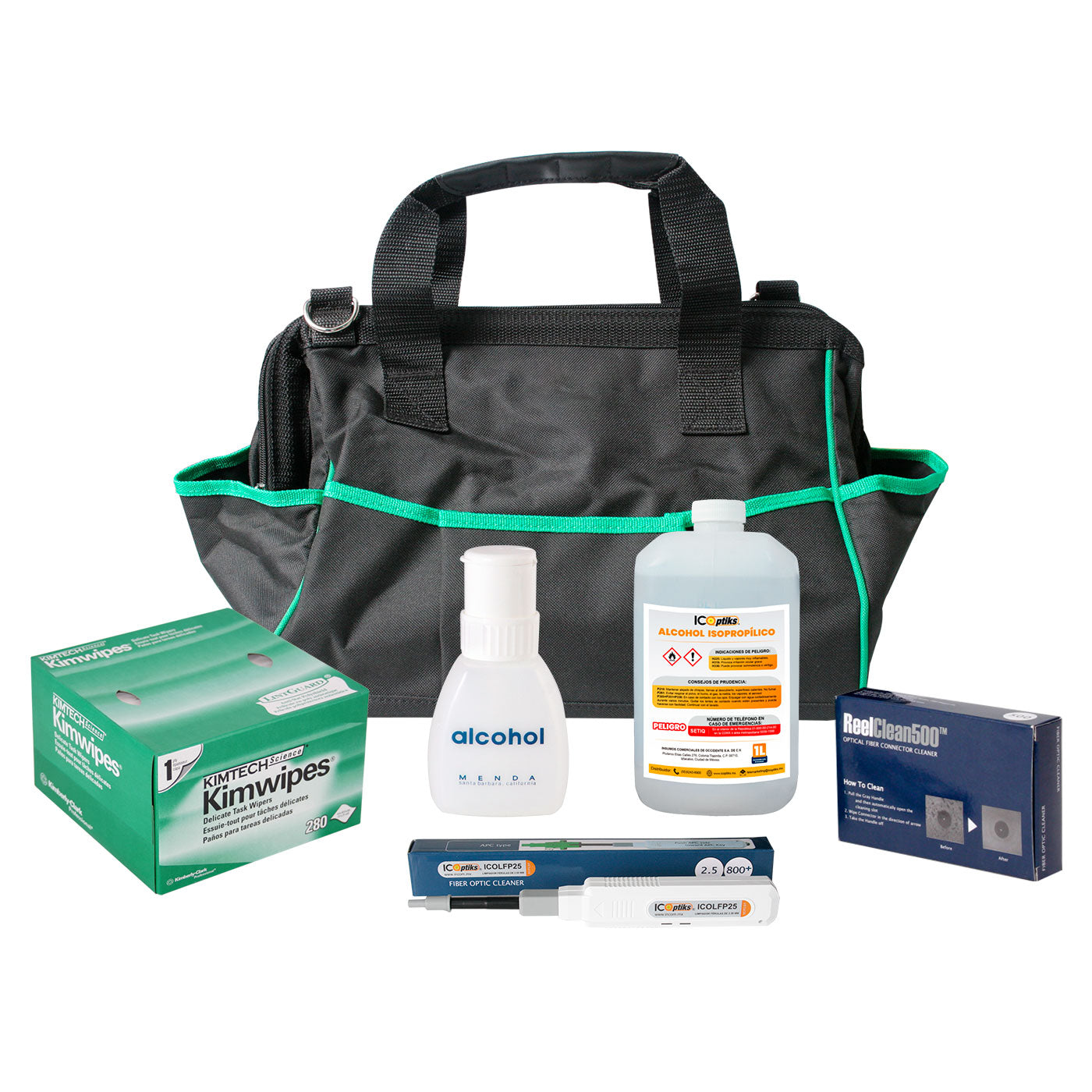 Kit básico de limpieza de fibra óptica maletín suave