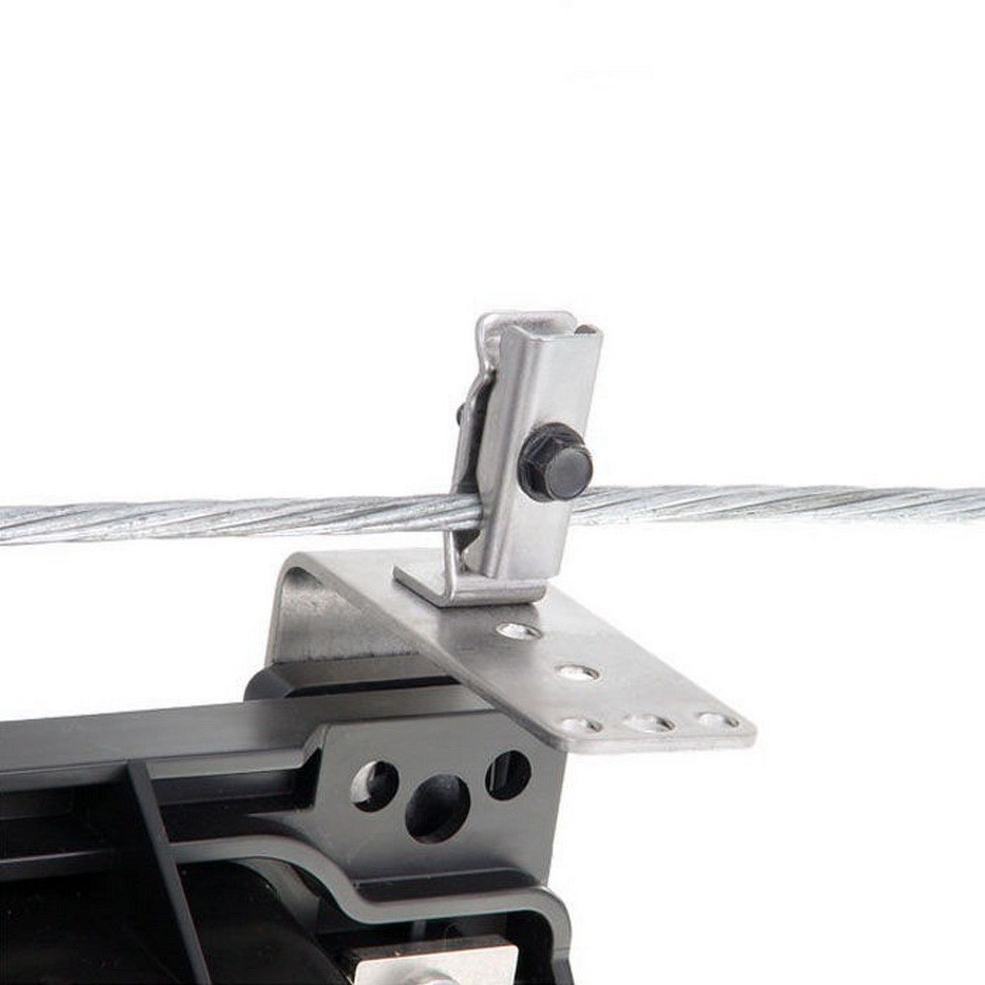 - Kit de sujeción aérea para cierres (S, SL, LS, LL), contiene un par de herrajes inoxidables para suspender en mensajero las cajas de empalme tipo 2178 de 3M.