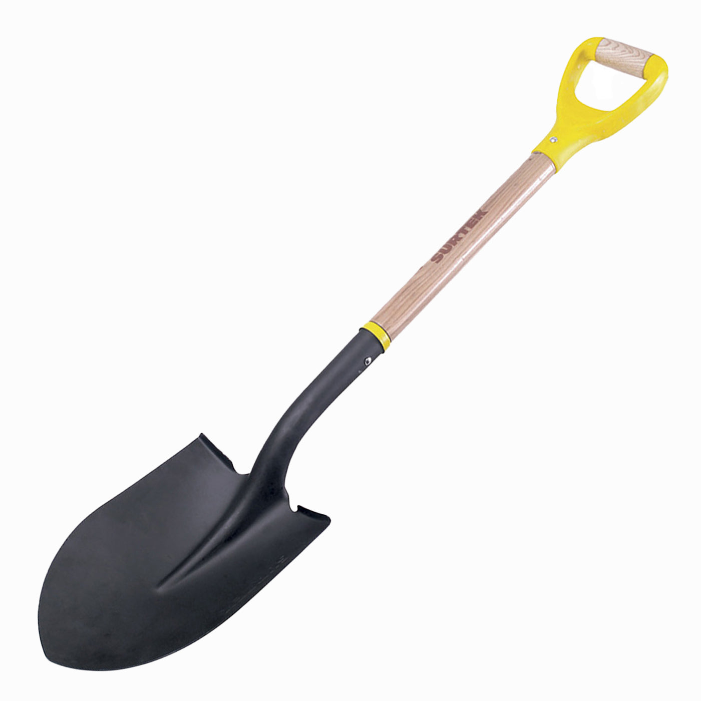 • Pala redonda de 30" de largo con mango de madera y puño contractor grip