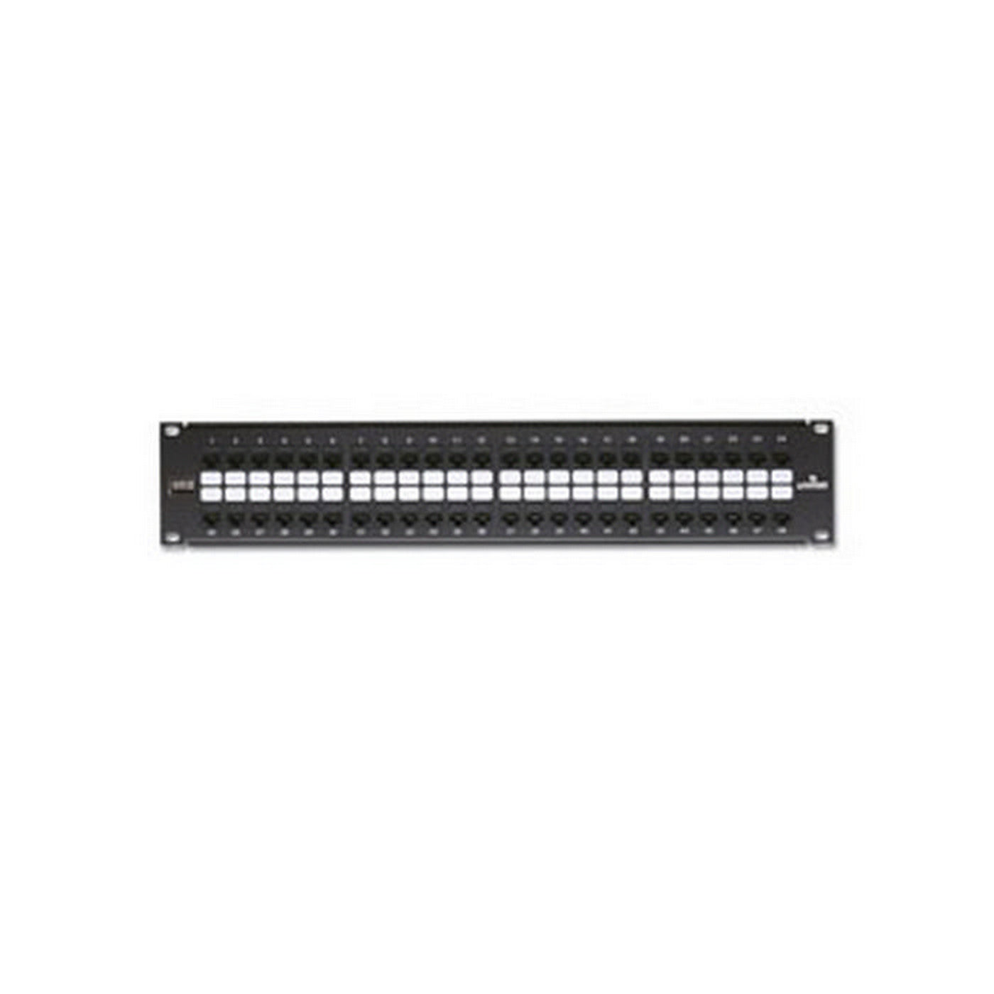 Panel de parcheo recto "QuickPort" de 2UR con 48 puertos RJ45 "eXtreme" categoría 6 con barra de administración de cable.