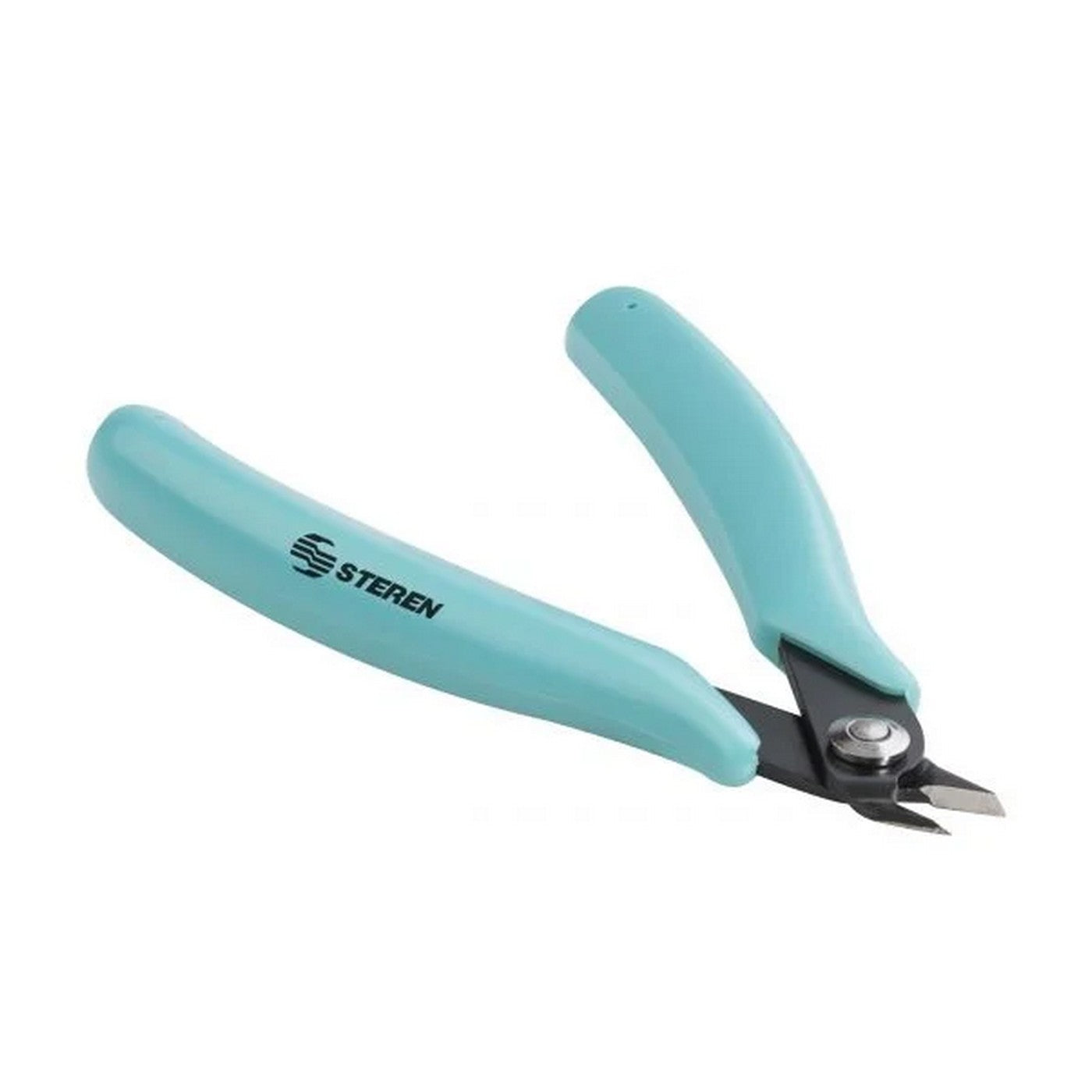 Pinza profesional para micro corte con navajas tipo Corte Final o Flush. Su cabeza estándar de forma cónica permite realizar cortes precisos, aun en lugares de difícil acceso y con un área de trabajo limitada, por lo que es ideal para uso en aplicaciones electrónicas. Fabricada en metal tratado de alta duración, con acabado pavonado y mango de 5 pulgadas (12,5 cm) ergonómico, en color azul.