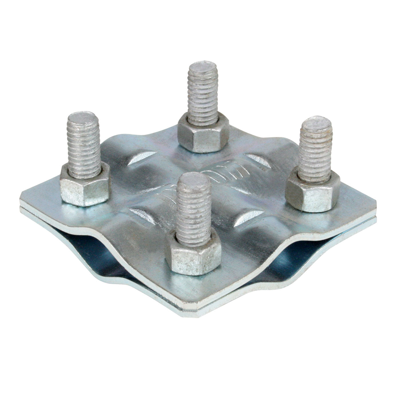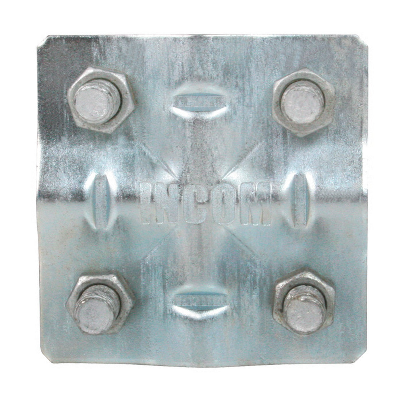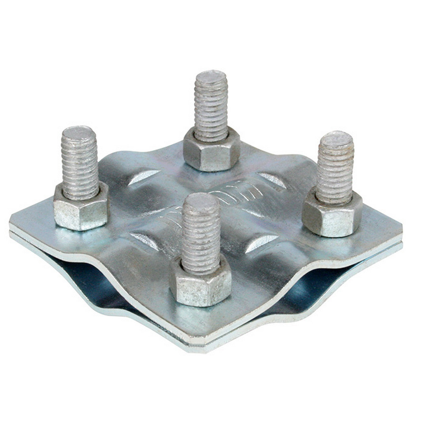 Placa crucero galvanizada cuadrada para cable mensajero de 1/4" a 3/8" en cruces americanos en la ausencia de postes (grapa cruce)