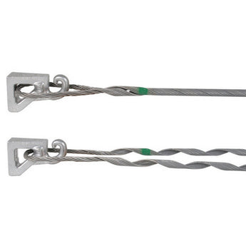 Conjunto de remate doble para cables de 9.5 a 10.5 mm. Incluye 2 remates de tensión y 2 herrajes de tensión tipo gancho.