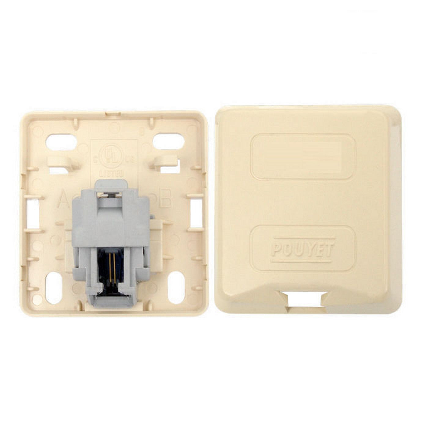 Roseta telefónica básica con gel de 2 hilos, cuenta con adhesivo para fijar en pared.