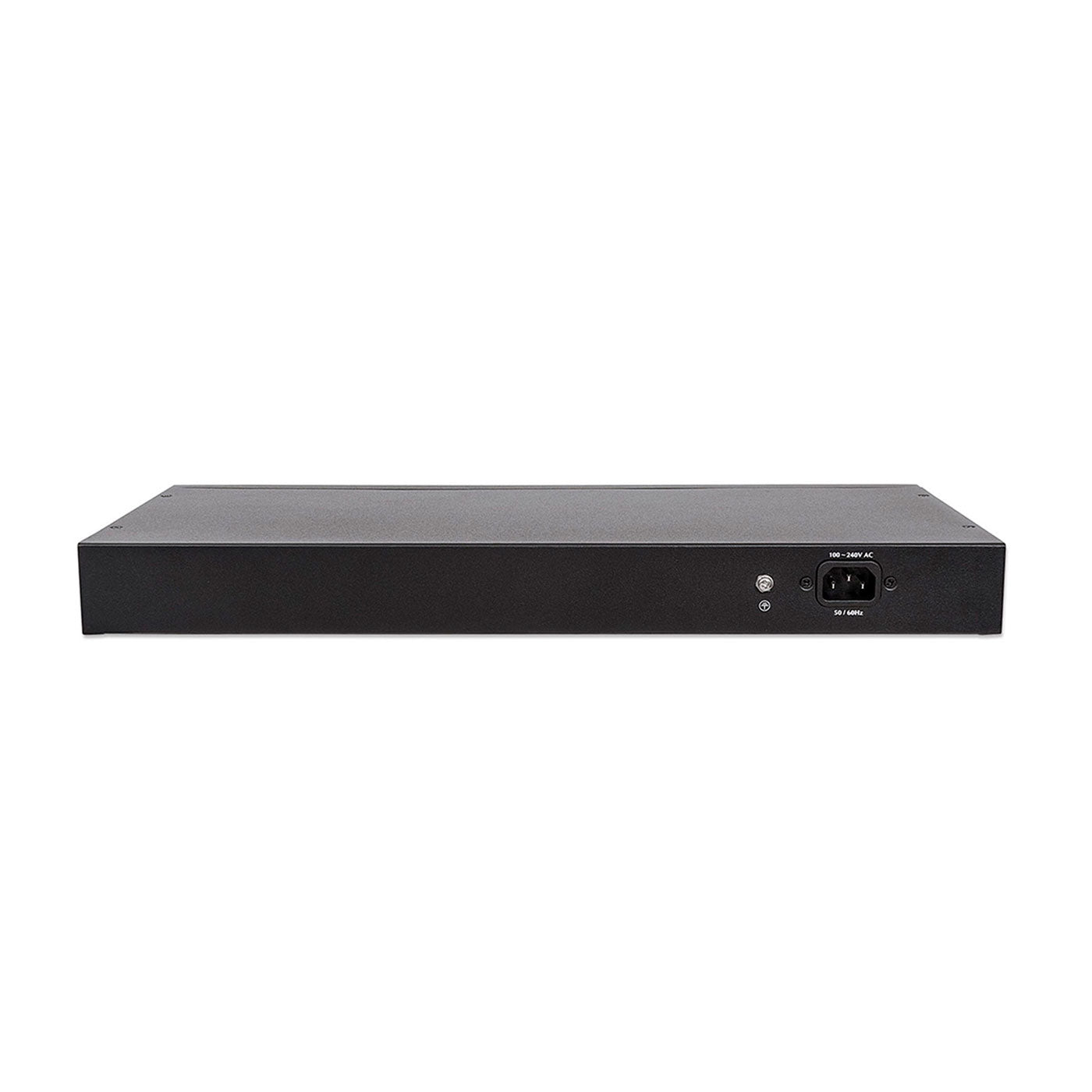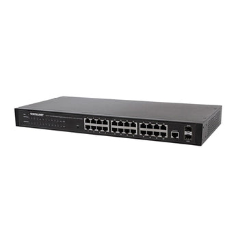 Switch Gigabit Ethernet (10/100/1000 Mbps) administrable de 24 puertos con 2 puertos SFP, carcaza metálica color negro para montaje en rack de 19".