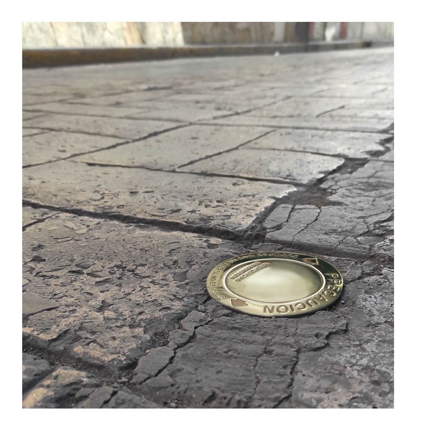 • Placa de latón de 94 mm de diámetro. Se instala a nivel de pavimento. Identificación de todo tipo de redes subterráneas.