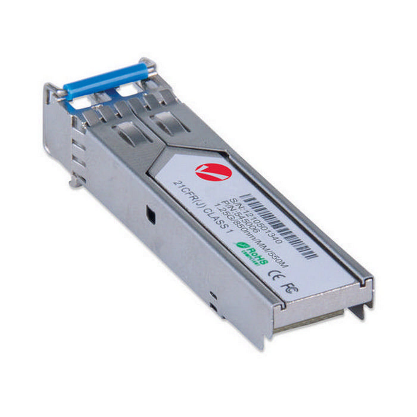 Transceiver SFP Gigabit Ethernet (1000 Base-SX), puerto LC de 550 metros.